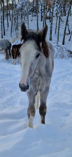 Hartelijk dank voor uw interesse in onze Shire Horse ruin Littlefoot. Littlefoot is geboren in de zomer van 2023 en is op zoek naar een geweldig nieuw thuis met paardenmaatschappij. Hij is in een kudde opgegroeid en brengt dagelijks veel tijd door met zijn soortgenoten. De kleine (nu al grote) man heeft ons de nodige zenuwen bezorgd, omdat hij vanaf het begin niet bij mama wilde drinken. Drie maanden lang hebben wij hem daarom elk uur gevoerd, ook 's nachts. Vanaf de vierde maand werden de intervallen verlengd, maar het was een intense tijd met weinig slaap. Toch – of juist daarom – is Littlefoot een lieve ruin geworden die mensen gewoon geweldig vindt. Sommige "flesveulens" ontwikkelen wat respectloze trekken wanneer ze met de hand worden grootgebracht, maar dat is bij Littlefoot niet het geval. Hij vindt knuffelen en kriebelen gewoon fantastisch, maar zonder opdringerig te zijn. In de kudde is Littlefoot evenwichtig en sociaal. Beide ouders hebben een evenwichtig en vriendelijk karakter. Littlefoot groeit momenteel extreem in de hoogte, dus het is goed mogelijk dat hij ooit de 2-meter-markering zal overschrijden. Hij kent alle dingen die een jong paard zou moeten kennen en we hebben ook al met hem geoefend met het rijden in de trailer. Shire Horses groeien tot een leeftijd van ongeveer 8 jaar. Het wordt daarom ten zeerste aanbevolen om met het berijden van dit ras te wachten tot een leeftijd van 5 jaar. Pas dan is het bewegingsapparaat voldoende ontwikkeld om een ruitergewicht zonder negatieve gezondheidsimpact te dragen. Wandelen, grondwerk, handpaardbegeleiding, ontspanningstraining, enzovoort zijn uiteraard al mogelijk en zorgen ervoor dat een latere berijding stressvrij en goed voorbereid kan plaatsvinden. Onze dieren worden alleen in de beste handen en in een leeftijdsgeschikte thuisomgeving geplaatst, daarom is het voor ons belangrijk om voldoende tijd voor geïnteresseerden te nemen. Ook is het voor ons belangrijk dat het paard mee beslist, want ook voor onze dieren moet de klik goed zijn. We willen ook vermelden dat we beschikken over een netwerk van professionele transportbedrijven en graag aanbevelingen doen indien nodig. Ook bij een transport naar het buitenland regelen we graag samen de benodigde bureaucratische zaken. U kunt graag een kennismaking met Littlefoot inplannen. Bij interesse plannen we graag een gezamenlijke afspraak zodat een wederzijdse kennismaking rustig en stressvrij kan plaatsvinden. We vragen u om in eerste instantie schriftelijk contact met ons op te nemen via aanvraag/mail/Whatsapp, omdat we onze telefoon in de stal op stil hebben staan en we graag terugbellen zodra we "paardvrij" zijn. We zullen ons dan zo snel mogelijk met geïnteresseerden in verbinding stellen, maar we vragen om begrip dat de verzorging van onze paarden soms leidt tot een iets langere responstijd. Verdere indrukken van onze paarden zijn ook te vinden op ons Whatsapp-kanaal. Bij interesse sturen we graag de link hiervoor op. Wie een Shire Horse met een zacht en mensgericht karakter zoekt, dat hij liefdevol als partner aan zijn zijde wil begeleiden, kan zich graag bij ons melden, het liefst via Whatsapp. Onze dieren worden alleen in de beste handen en in een leeftijdsgeschikte thuisomgeving geplaatst, daarom is het voor ons belangrijk om voldoende tijd voor geïnteresseerden te nemen. We kijken uit naar een bericht voor Littlefoot. De plaats is belangrijker dan de prijs, daarom waarderen we een korte beschrijving van het beoogde thuis.