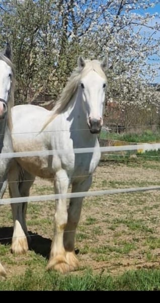 Attention to all interested parties looking for an optical and character highlight: our affectionate Shire Horse gelding Nepomuk is searching for a new dream home. Nepomuk was born in August 2020 and comes from our own breeding. He currently stands at 1.75 meters tall, and it is expected that he will grow a few more centimeters. He has been in our possession since his birth and is now ready for a lifelong home with kind people who wish to support him appropriately and spend time with a lovely horse. Unfortunately, Nepomuk showed signs of summer eczema for the first time last year, which can be kept well under control through blanketing. Due to this issue, Nepomuk is being offered well below his value. We have decided to seek a place for this young man with individuals who are willing to invest a bit more care (especially blanketing in summer) in exchange for a truly wonderful and grateful Shire Horse gelding. Nepomuk was raised until the start of his training in a loose housing system with companions of various ages. Currently, Nepomuk is enjoying a vacation on a spacious summer pasture in Upper Austria, spending time with other mares and geldings. He has proven to be exceptionally easygoing in his interactions with other horses, and he has gotten along very well with our stallions. We would describe him as completely "socially compatible." Recently, we have started his training under saddle. He shows motivation, friendliness, and sociability, a true "model student" who simply brings joy and fun. However, due to his age, we are still at the beginning of his training; Shire Horses grow until they are 8 years old, so we are taking special care to ensure a gentle training approach. Nepomuk is easygoing and uncomplicated in handling, both on the ground and as a riding horse. At the moment, he enjoys testing boundaries and asking questions (never maliciously or unmanageable), which is why we would like to place him in more experienced hands to ensure that the joy of working with him lasts a long time. As a riding horse, he is still at the beginning of his training. He is now familiar with the rider on his back and has also been taken out as a lead horse, which he enjoys very much. With appropriate support, there is certainly still a lot of potential with him. Nepomuk has full papers from the English Shire Horse Society. Of course, Nepomuk is regularly vaccinated, dewormed, and presented to the farrier, where he always behaves well. He is currently barefoot and manages well with it. Loading into a trailer is also no problem. Our animals are only placed in the best hands and in an age-appropriate home, so it is important for us to take enough time for interested parties. It is also important to us that the horse has a say in the decision, as the chemistry must be right for our animals as well. We would be happy to arrange a meeting with Nepomuk. Since Nepomuk is currently on "summer vacation," we would gladly find a mutual appointment for a calm and stress-free introduction. When scheduling, we will also be happy to provide his exact location. If you are interested, we would appreciate a brief description of the future home. It is place before price. Further impressions of our horses can also be found on our WhatsApp channel. We would be happy to send the link if you are interested. We look forward to hearing from you regarding Nepomuk.
