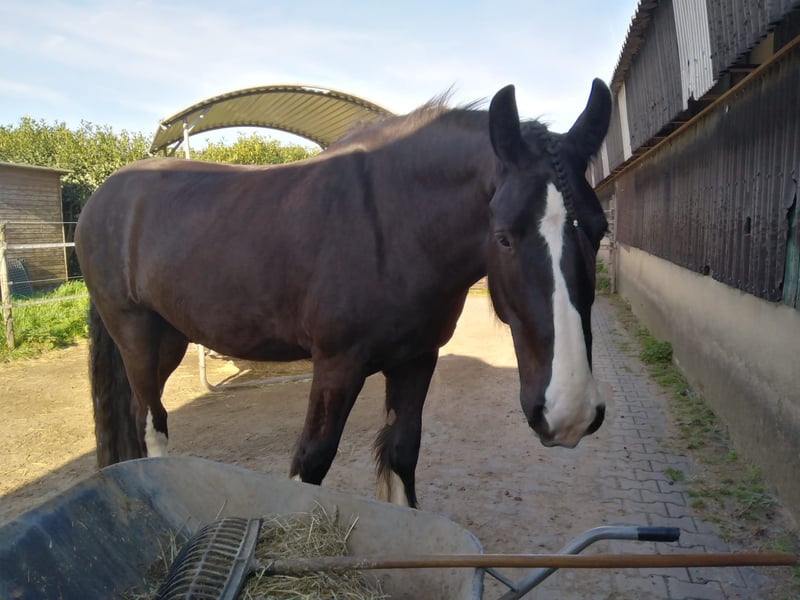 Paard te koop voor show, vrij- en grondwerk. Shire hengst, 6 jaar oud, ongeveer 1,83 m hoog. Uitstekend getraind op de grond. Niet bereden of gereden. Vanwege een lichte hartklepinsufficiëntie is hij niet geschikt voor zwaar werk. Hij is prachtig, intelligent, gevoelig, alert en zeer mensgericht. Hij staat samen met zijn vriend in een open stal met grote loopbox en is de ranghoogste van de twee. Omdat hij deze aandoening heeft, wordt hij niet aangeboden als rij- of rijpaard. Ik zoek een permanent thuis met ervaring. Graag geen handelaren, slachters, beginners of mensen die een mooi paard voor een lage prijs willen kopen. Zo’n paard heeft ruimte nodig, is intensief in de verzorging en kost geld. Hij heeft volledige Engelse papieren. Bij serieuze interesse graag uitsluitend telefonisch contact: 01722089055. € 4.500,00 VB Plaats gaat voor prijs.