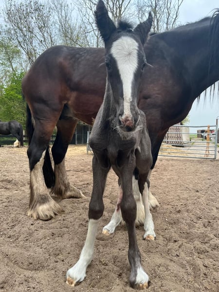 Mooie lieve shire merrie Wij zoeken voor deze merrie een goed baasje waar zij verder kan haar moeder is beleerd voor de kar en onder het zadel. wij verwachten dat dit met haar ook geen probleem zal zijn.