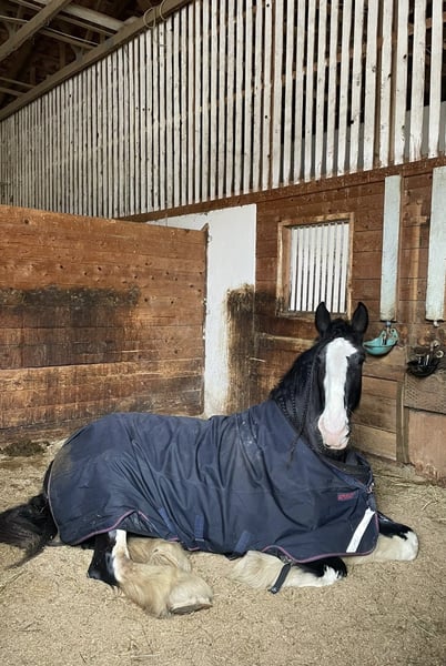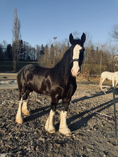 If everything fits, I am willing to give up my 6-year-old Shire mare. This is not an emergency sale; she will only be sold to the right home. Cinderella came directly from the breeder in North Rhine-Westphalia at the age of three. I personally met her there and picked her up. She still had some things to learn back then, but she is now well-behaved in all common situations. Cinderella is barefoot and has never had shoes. She is calm at the blacksmith’s. She is regularly vaccinated and dewormed. However, she has a minor health issue: she had a pasture accident resulting in a head wound, and there is a suspicion of ataxia. In everyday life, I haven’t noticed anything unusual—she doesn’t stumble noticeably or show any signs of falling or losing balance. She finds trailer loading quite difficult but is generally cooperative. When traveling, she tends to lean on the tailgate and has to exert herself to balance everything. Under saddle, she has only been ridden at the canter in the field so far. In the indoor arena or on the riding yard, she can manage with ground support, which should improve with some training. She has been trained very gently and gradually. The suspicion of ataxia should always be kept in mind, and special attention should be paid to any signs of pain. I ride her both alone and in groups. She is familiar with the riding arena and indoor hall, lunging, groundwork, double lunge, grooming, washing, drying, and shearing—everything that belongs to proper handling. A dressage saddle and other high-quality equipment in her size will be included. She is housed in a large XXL box with daily turnout and is also familiar with open stable management. She is not suitable for beginners, as she can become easily unsettled in unfamiliar situations or environments and may try to escape. Once you know what to watch for, however, she can be handled with care. She will not be sold abroad (only within Germany or Austria), nor to riding schools, as a companion horse only, or to pure breeding operations. She needs mental and physical stimulation and affection. A thorough getting-to-know-each-other process is preferred. Absolutely priority goes to the right home over price.