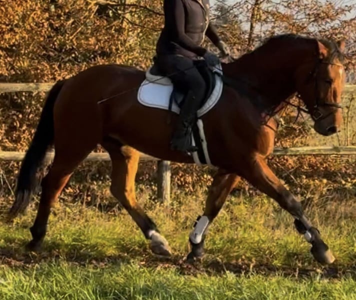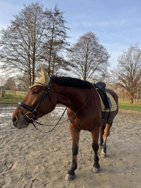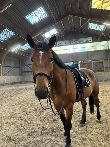 Schweres Warmblut / Schlesier Wallach – vielseitiger Freizeitpartner mit Kutschenerfahrung Zum Verkauf steht ein im Juni 2020 geborener Wallach (Schlesier / schweres Warmblut) mit einem Stockmaß von ca. 167 cm. Der Wallach ist freizeitgeritten und arbeitet solide in der Dressur. Kleine Sprünge meistert er problemlos und geht in der Gruppe oder mit einem Begleitpferd ins Gelände. Kühe oä. sind kein Problem. Zudem wurde er bei seinem Vorbesitzer sowohl ein- als auch zweispännig vor der Kutsche gefahren. Er lässt sich problemlos verladen. Er ist ein ranghohes Pferd und benötigt einen erfahrenen, sicheren Reiter, der ihn korrekt zu arbeiten weiß. Er zeigt sich dabei als ehrliches, aber sensibles Pferd, das eine klare und konstante Bezugsperson schätzt und nicht gerne von ständig wechselnden Reitern geritten wird. Daher ist er nicht geeignet für Kinder, Anfänger oder Wiedereinsteiger und wird ausdrücklich nicht als Schul- oder Voltipferd abgegeben. Gesucht wird ein ambitionierter Reiter, der ihn weiter fördert und ihm die nötige Sicherheit gibt. Trotz seiner kräftigen Statur ist er kein Gewichtsträger und muss korrekt geritten werden. Haltung & Bedürfnisse: Offenstallhaltung wird bevorzugt Boxenhaltung nur bei täglichem ganztägigen Auslauf mit Artgenossen Versteht sich mit Stuten als auch mit Wallachen Benötigt dauerhaft Zugang zu Raufutter (sonst Futterstress) Heu/Gras Gesundheit & Pflege: Regelmäßig geimpft und entwurmt Zähne zuletzt im Februar 2026 gemacht Osteo war 2025 zweimal vor Ort, da war alles super Schmied kommt alle 8 Wochen, aktuell barhuf (zuvor 4-fach beschlagen, zuletzt 2024) Keine bekannten gesundheitlichen Einschränkungen Ein Probereiten ist jederzeit möglich und gewünscht. Gerne auch öfter um das Pferd besser kennenzulernen. Hierfür wird eine Gebühr von 20€ erhoben, um Reittourismus zu vermeiden. Für ein Vor- und Probereiten 35€ Die Kosten werden selbstverständlich bei Zusage mit dem Kaufpreis verrechnet. Der Wallach wird nur in fördernde und passende Hände abgegeben. ES GILT PLATZ VOR PREIS. Ein Startpaket mit Zubehör (Trense, Halfter etc.) ist inklusive. Weiteres Zubehör wie ein neuer auf ihn angepasster Dressursattel 17,5" von Passier, sowie sämtliche Decken können gegen Aufpreis übernommen werden.