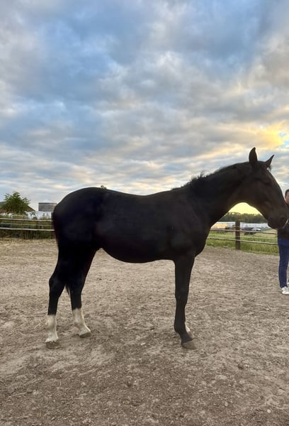 Silesian stallion, one and a half years old. Very friendly and curious. Always approaches people in the paddock. Daily turnout. Beautiful coat color - 3 socks and a star on the forehead. Unique sheep nose. Regularly trimmed. Current height: 155 cm. Will be a tall horse. I will send videos via SMS/WhatsApp. Father is in the second to last photo and mother is in the last one. Father's height is 165 cm. Mother is 168 cm.