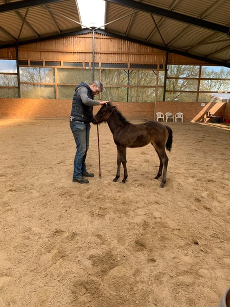 Te koop staat een prachtige Amerikaanse Quarter Horse merrie met de interessante kleur 'smoky black', geboren op 13 maart 2024. Ze heeft momenteel een stokmaat van ongeveer 140 cm, waarschijnlijk wordt haar uiteindelijke maat rond de 150 cm. Daarmee is ze perfect geschikt voor reining en andere western disciplines. De merrie valt op door haar helderheid, onbevreesdheid en elegante uitstraling, evenals haar veelbelovende potentieel in de reining-sport. Ze is gezond, goed gesocialiseerd en liefdevol opgevoed. De overgang naar een nieuwe kudde zou probleemloos verlopen. 'Joy' is de ideale partner voor ruiters die op zoek zijn naar een jong paard met veel talent. Bij interesse ben ik graag bereid om verdere informatie en foto’s te verstrekken.