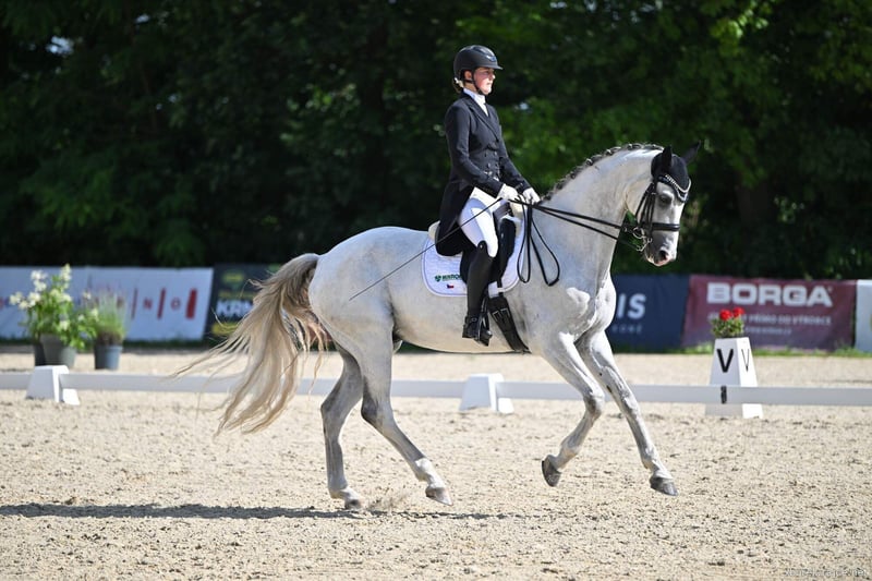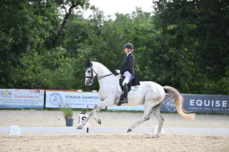 VDM Gordi *2016 173 cm Ein äußerst freundlicher und unkomplizierter Wallach mit viel Turniererfahrung. Er ist gewohnt, auf die Weide zu gehen, im Wald sicher unterwegs und leicht zu reiten. Er liebt Menschen und ist stets motiviert, alles zu tun, was man von ihm verlangt. Er kann ein guter Lehrmeister für Kinder und Junioren sein, besitzt aber auch das Potenzial für höhere Prüfungen. Er hat bereits in der Intermediaire I gestartet und spielt mit Tempis und Piaffe vom Boden aus. Er ist ein wirklich intelligentes Pferd. Früher hat er mit seinem Besitzer an Vielseitigkeits- und Springprüfungen teilgenommen, sodass er vielseitig einsetzbar ist. Mit schwerem Herzen müssen wir ihn verkaufen. Der Besitzer hat bereits ein neues Pferd gekauft, und in unserem Stall müssen wir Platz für die jungen Pferde schaffen. Daher ist der Preis sehr fair, und der Besitzer ist bereit, noch weiter nach unten zu gehen, wenn wir schnell den passenden Käufer finden. Er ist topfit, hatte nie eine Verletzung. Die Röntgenaufnahmen seiner Beine wurden im Mai gemacht. Gerne sende ich ein Verkaufsvideo. Wenn Sie interessiert sind, schicken Sie mir bitte eine private Nachricht oder kontaktieren Sie mich per WhatsApp unter +420 721 303 675.
