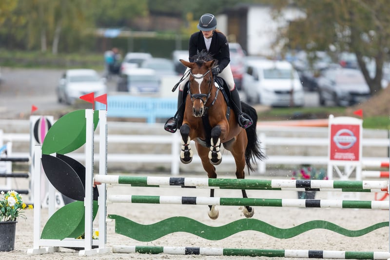 --------------------------------------------------------- An absolute sweetheart to handle — perfect manners with farrier, vet, clipping and transport, easy enough for children to take care of. Safe to hack out with beginners, but a forward, sporty type for an experienced rider in the arena. Competing up to 1.10m national shows, schooling higher at home. Consistent and competitive, regularly placed and often in the ribbons. Not spooky, very honest to the fences, wants to jump clear and gives her best every time. Lovely technique over jumps. Well maintained – regular shoeing (front), deworming, vaccinations, physio and dentist up to date. Turned out daily in a herd of mares. No health issues, X-rays available for inspection.