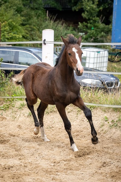 Willow ist eine vielversprechende,vielseitig veranlagte Stute . Diese menschenbezogene und immer freundliche Stute ist mit 3 hervorragenden GGA ausgestattet. Beim Fohlenchampionat in Bad Segeberg wurde sie Rassesiegerin der kleinen Deutschen Reitpferde. Ihr Vater Noble Dance ,147 cm, wurde 2024 Bundeschampion der 3-jährigen Reitponyhengste . Ihre Mutter ist ein 160 cm große Holsteiner Stute von Lucky Champ , Stamm 4815. Willow kann November/Dezember in ihr 5 Sterne zuhause ziehen.