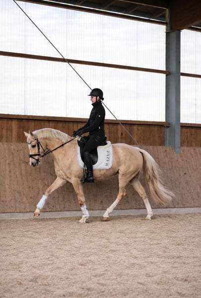 Selbstgezogener Barbietraum sucht Bestplatz ♥️ Elitehengst Cadlanvalley Sir Ivanhoe x Fürst Frederick x Roboter Schicker 4j Wallach mit einem derzeitigen Stockmaß von 1,47. Seine Mutter und Geschwister sind alle spät gewachsen. Es wird ein Endmaß von mindestens 1,55m erwartet. Cotton Eye Joe wurde von uns gezüchtet, ist bei uns aufgewachsen und wurde nun von uns schonend angeritten. Er ist vollkommen unverbraucht und hat in seinem Leben keine schlechten Erfahrungen gemacht. Im Umgang und in der Arbeit zeigt er sich super menschenbezogen, brav und lernwillig - so macht die Arbeit mit ihm einfach Spaß. Er verfügt über drei überdurchschnittliche Grundgangarten mit einem guten GO und macht einen sehr guten Freisprung und auch schon erste Sprünge unter dem Reiter. Er geht alleine und in der Gruppe ins Gelände und ist einfach für jeden Spaß zu haben. Ein vielversprechendes Kleinpferd zum weiter ausbilden. Er bringt alles mit um ein toller sportlicher Begleiter zu werden, aufgrund seines grundehrlichen Charakters können wir ihn uns zukünftig aber auch absolut als Kinderpony vorstellen. Ein Pferd für die ganze Familie. Leider hat er einen Röntgenbefund in den Sprunggelenken (klinisch einwandfrei) und wird daher weit unter Wert verkauft. Mehr Informationen gerne auch via WhatsApp oder telefonisch unter +49 173 7359633