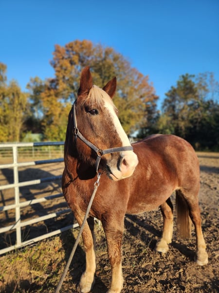 We are offering our South German Cold Blood for sale. The gelding has been ridden and ground-trained, but less frequently in winter. His height is 1.65 m (16.1 hh), weight approximately 733 kg, and he is 17 years old. An equine passport is available. Due to his presence and weight, he is not suitable for beginners, as he displays typical draft horse characteristics and can be quite independent, though never malicious. Currently, he is kept in an open stable with my mare and is on pasture with a small group. He is a cuddly companion who enjoys grooming and being stroked. He behaves well during hoof care and when the farrier is present. He is barefoot and vaccinated. We are looking for a home where he will be regularly exercised and mentally stimulated. The listed price of 123 is for the advertisement only and is not relevant. For trial riding, I ask for €30 to prevent riding tourism. This amount will be deducted from the purchase price if he is bought. For serious inquiries, the purchase price will be disclosed, and videos can be provided upon request.