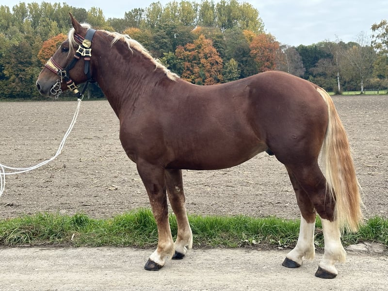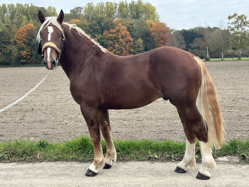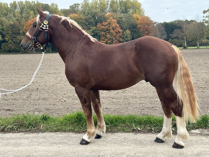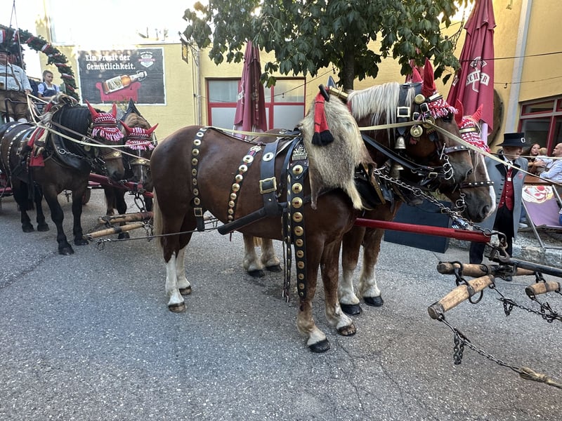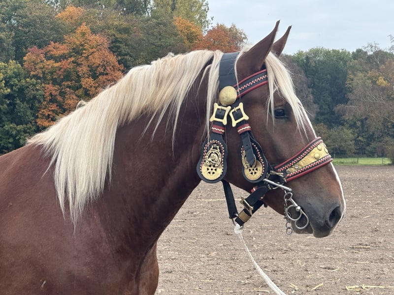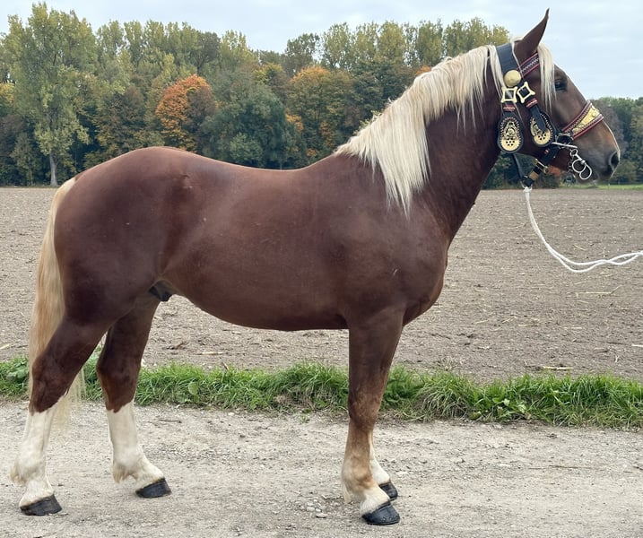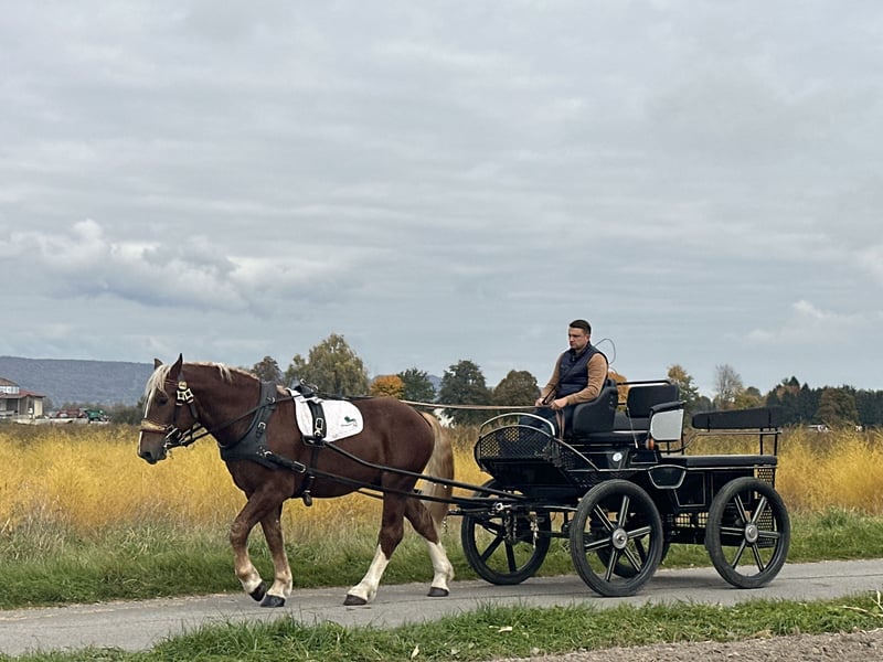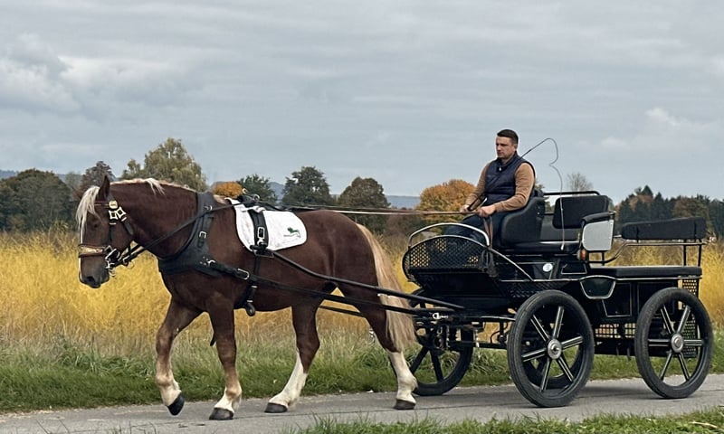 Hier sehen Sie einen Wallach der ein bis achtspännig gefahren ist , er kennt Umzüge sowie Prozessionen und zeigt sich dabei immer super gelassen und brav. Momentan ist er vorne beschlagen und steht in einer gemischten Herde 24 Std auf der Koppel.