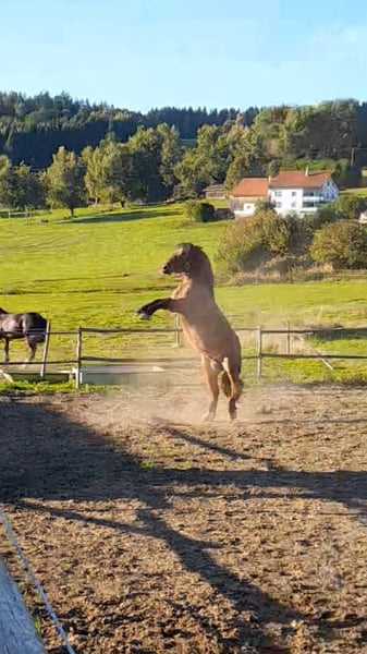 Wir verkaufen unseren braunen Süddeutschen Kaltblut Hengst Prinz, 2023 geboren. Vitali x Dorian PSSM FREI Momentan hat er ein Stockmaß von 1,63 m. Er ist schmiede- und verladefromm, ruhig und ausgeglichen im Umgang. Dem Alter entsprechend kennt er die Longe und Handarbeit, nun wird er weiter zum Fahrpferd ausgebildet. Bei Interesse telefonische Anfragen unter 0151 23727001.
