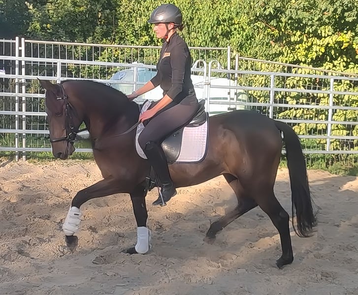Sometimes pictures say more than 1000 words. We are selling a beautiful 9-year-old Spanish gelding, approximately 158 cm tall, with a neck that resembles that of a stallion and a movement mechanism that is unmatched for a Spanish horse. He presents himself pleasantly and comfortably under the saddle. We are only selling him to responsible hands, which is why this low price applies (quality over price). He can be sold with complete new equipment for a small additional fee. Transport can be organized. A veterinary pre-purchase examination can also be conducted by your own veterinarian, including X-rays and blood tests. We look forward to your call at 01774289729. Written inquiries will not be answered.