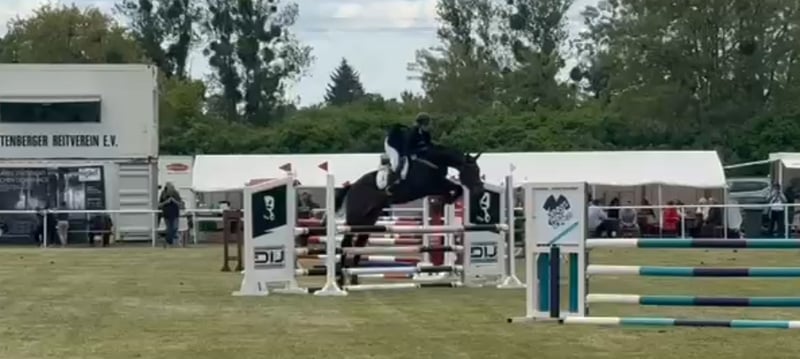 For sale is a 10-year-old gelding, CDE, with a dark chestnut coat, approximately 16.1 hh. Sire: Q’orrado d’Argent (French jumping lineage, grandsire Verdi). On the dam’s side, he comes from a Hannoverian line with dressage influence. Full pedigree available. This horse is very reliable in jumping: he always clears everything, regardless of rider, and has never refused a fence. He has good movement and is very easy to work with in dressage. He performs leg-yields, shoulder-in, and haunches-in; lateral work is initiated and clear. Simple changes are confirmed, and leg-yields are started. In dressage, he has not been shown frequently and needs some time at the start of the season to loosen up in the arena, but improves quickly with work and outings. In jumping, he adapts to any surface: grass, sand, indoor or outdoor arenas, with no issues over obstacles, colors, or decorations. As a eventing horse, he jumps best with a steady rhythm and a bit more impulsion; it’s a small challenge for the rider to avoid going too fast or too collected. Overall, he is an easy jumper. The more freedom you give him, the better the results. His greatest strength is cross-country (XC): he jumps confidently and is familiar with all common obstacles (ditches, up and downhills, skinnies, etc.). He is a very safe and trustworthy horse. He has competed at **A-level** in Germany only a couple of times, but we trained many more times with increased difficulty and height, which he handles without any problem. He enjoys work on the ground and in free movement. He knows exercises like the Spanish walk, Spanish step, turns, and has begun work towards piaffe. He goes alone or in groups to the field, travels easily in trailer and truck, and behaves properly with farrier and veterinarian. He has very good hooves; in Germany, he worked over jumps up to 1.15 m and cross-country training without shoes. I bought him directly from his breeders, where I also worked. He has enough experience for his age, making him ideal for someone looking for a safe horse to continue progressing or learn with. At the same time, he is not “worn out” and is fully healthy. He spent 2 years in Germany, where, due to health reasons, he could not be shown frequently, but he participated in training sessions and clinics outside the home. He is being sold due to abandonment of riding. I am looking for a five-star home; otherwise, he will return with me to Germany. Currently, he has had limited work since the end of last year, having been ridden only occasionally. He always behaves impeccably but is not in full training condition at the moment. The home is more important than the price, but he is a true all-rounder and a guarantee in any situation. He is perfect for some fitness work and enjoying rides. Price negotiable: €15,000