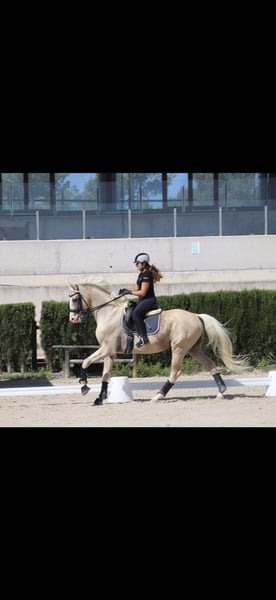 Precioso caballo castrado palomino de 11 años de edad, con nivel San Jorge confirmado y con todos los ejercicios de Gran Premio. Es un caballo divertido y muy noble, tanto en pista como en el exterior. Radiografías actuales. Más información +34 626210161 Alba