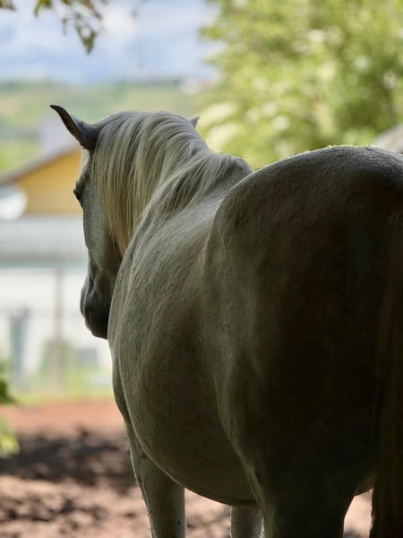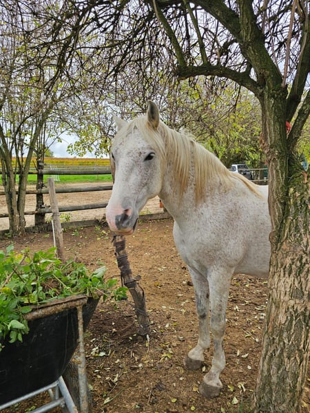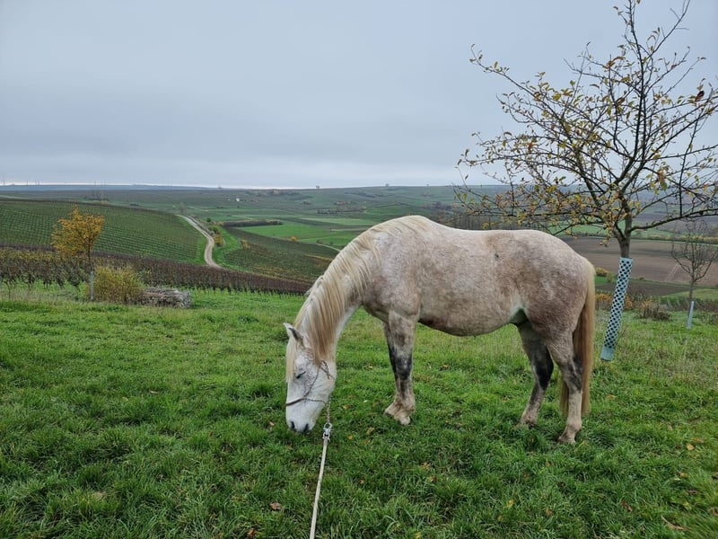 🐴 Description It is with a heavy heart that we are seeking a new, suitable home for our gelding Pete. Pete is a horse with a lot of character, sensitivity, and heart – one who forms a genuine bond with his human and will go through any terrain together with him. In the terrain, he shows his full strength: confident, enduring, and brave, he handles forests, mountains, and valleys with calmness and energy. Long rides and trekking tours are his element – he loves movement and new challenges. However, Pete is not suitable for beginners. Due to his strong will, he requires an experienced, consistent rider who can provide him with security and clear guidance. He is sensitive, attentive, and honest – and clearly shows when something doesn’t suit him. In the herd, Pete is generally social but can become a bit of a diva if he feels shortchanged on feed. When he is moody or stressed, he may react irritably and nip at humans – a behavior that can be well managed with calm, clear leadership. Once he has gained trust, Pete is a loyal partner who would go through fire for his human – honest, strong, and with a big heart. 💡 Profile Breed: Spanish cross Age: 12 years Height: 15.3 hh Color: Grey (Tordo) Temperament: Willful, sensitive, attentive, loyal Strengths: Enduring, reliable in the terrain, brave, versatile Use: Trekking, trail riding, leisure riding (he probably also had some schooling in Spanish, but this was not tested with us). Health: Very good, regularly vaccinated and dewormed. Hoof care & Housing: Well cared for, regularly trimmed, used to an open stable. Special feature: Becomes food-aggressive if he feels shortchanged in the herd. 📍 Additional Information A trial ride is possible by arrangement. Pete will only be placed in experienced, responsible hands that are willing to invest time and heart into a trusting partnership and are capable of doing so. If you are looking for a horse that will accompany you with courage, energy, and loyalty, Pete is exactly the right choice for you!
