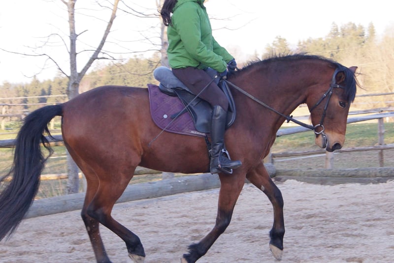 Schweren Herzens suchen wir für unseren Wallach Gitano ein neues, passendes Zuhause. Er ist ein sehr intelligenter und lernwilliger Spanier, der derzeit freizeitmäßig von uns geritten wird. Gitano überzeugt mit viel Charakter, Sensibilität und Herz - ein Pferd, das eine klare, faire und vertrauensvolle Führung braucht. Für Reitanfänger ist er nicht geeignet, da er einen Reiter benötigt, der ihm Sicherheit gibt und seine feine Art zu schätzen weiß. Im Umgang zeigt Gitano deutlich, wenn ihm etwas nicht passt, bleibt dabei aber stets ehrlich und gut lesbar. Beim Putzen ist er nicht besonders begeistert, dennoch ist er nach getaner Arbeit sehr zugänglich. Im Gelände kann man mit ihm allein ausreiten, allerdings gehört er eher zu den schreckhaften Vertretern und braucht dabei einen ruhigen, souveränen Partner an seiner Seite. Seit kurzem ist er vollständig beschlagen. Wenn es kalt ist, benötigt er etwas Zeit zum Einlaufen. Aktuell steht Gitano in einem kleinen Stall in einer Paddockbox mit täglichem Weidegang. Er ist den Umgang mit anderen Wallachen gewohnt. Wir können uns für ihn auch sehr gut einen Offenstall vorstellen, da ihm ein ruhiges, überschaubares Umfeld guttut. Zu große Ställe könnten ihn stressen, weshalb wir uns ein Zuhause wünschen, dass diese Forderungen berücksichtigt. Er steht zur Zeit auf Späne, da er manchmal etwas staubempfindlich ist. Gitano wurde regelmäßig geimpft und entwurmt. Gitano ist kein Pferd für jedermann, aber für den richtigen Menschen wird er ein treuer, ehrlicher und äußerst dankbarer Partner.