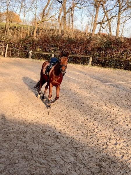 Te koop: mijn bijna 4-jarige Spaanse ruin. Momenteel ongeveer 1,55 m, groeit nog door. Omdat de klik tussen ons niet helemaal klikt en mijn professionele situatie inmiddels veranderd is, bied ik hem aan. Hij is leergierig, gemotiveerd en wil uitgedaagd worden. Hij kent longeren, hoefsmid, zadel, longeergordel, uitbinder en bit. Wandelen in het bos alleen is geen probleem. Stangenwerk in galop en draf gaat al heel goed. Een jong paard met potentieel, ideaal voor iemand die plezier heeft in verdere opleiding.