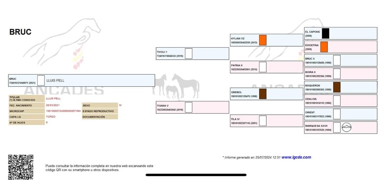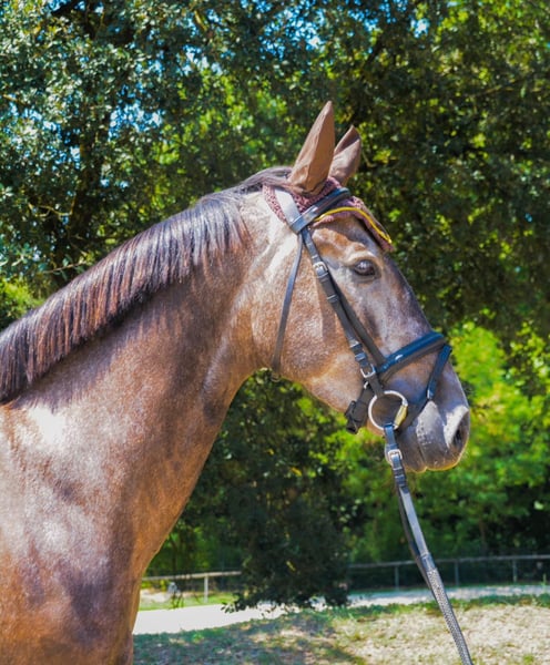 CDE 75 % PRE et 25 % KWPN, âgé de 4 ans, entrera en ses 5 ans en 2026. Castré. Ha une hauteur au garrot de 1,58 m. Monté, il marche, trotte et galoppe en piste, est bien dressé et se présente avec de bonnes allures, en étant calme et bien en main. Il saute un peu, sort très bien en extérieur et a commencé l’attelage à la longe. Son père pratique le saut d’obstacles et le dressage, et il concourt dans les deux disciplines.
