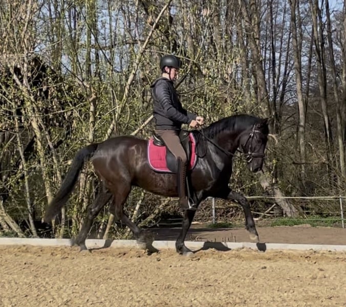 Zum Verkauf steht ein 8-jähriger Hannoveraner-Spanier Mix Wallach, der durch seinen tollen Charakter und seine angenehme Rittigkeit überzeugt. Dieser Wallach ist ein fleißiger, motivierter und aufgeschlossener Partner, der stets neugierig und lernwillig an neue Aufgaben herangeht. Er zeigt ein gesundes Vorwärts und arbeitet gerne mit. Im Gelände ist er motiviert und zuverlässig unterwegs und macht seinem Reiter viel Freude. Besonders hervorzuheben ist seine feine Anlehnung und Weichheit im Maul. Er eignet sich ideal für Reiter, die ein engagiertes, ehrliches und lernbereites Pferd suchen.