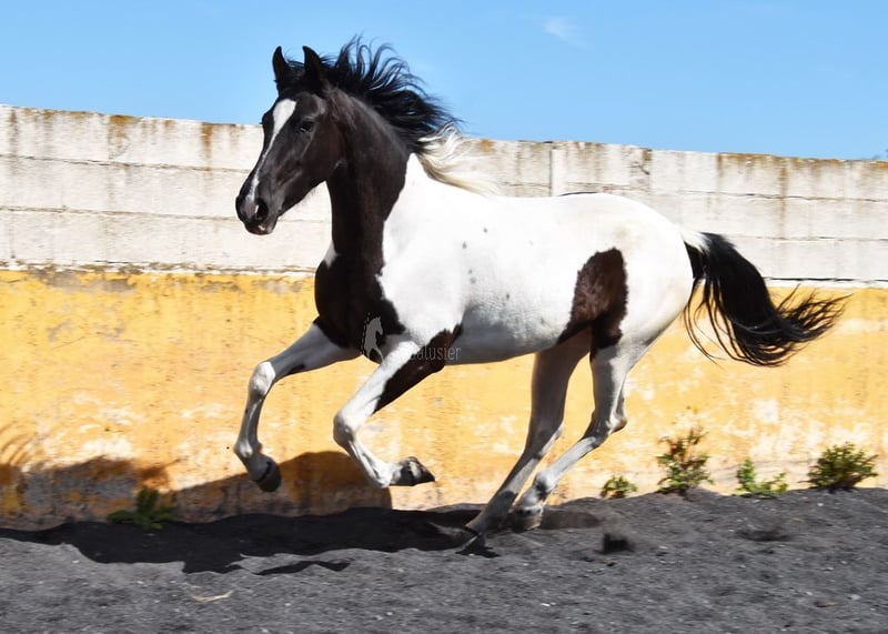 caractère doux, longé avec selle et bridon, monté, couleur spéciale, bonnes allures, origine : los Retamales, Ferrer Rovira, Miura www.elegante-andalusier.com