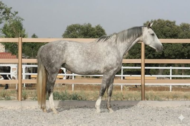 "Hana", yegua joven con buen nivel de doma e iniciación al salto. Conformación equilibrada y físico armónico. Manejada correctamente desde potra, con mentalidad seria y carácter noble al trabajo. Presenta cuello largo y bien insertado, dorso sólido y grupa poderosa. Sus movimientos son amplios y ascendentes con buena suspensión natural. Gran potencial para niveles medios-altos. Ideal para jinetes que busquen una yegua joven con proyección real y recorrido competitivo por delante.