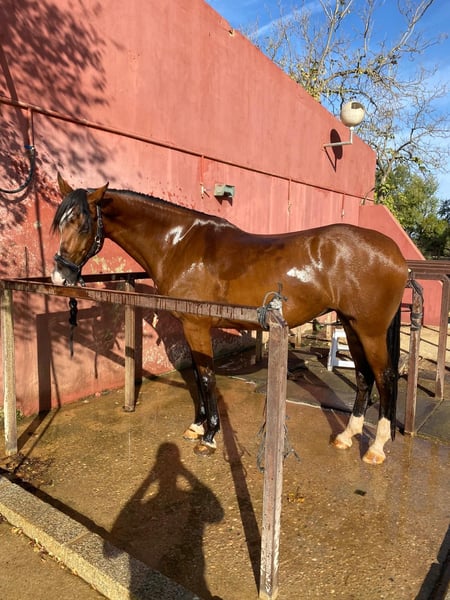 🐎 En venta – Yegua CDE 2018 (75% KWPN – 25% PRE) Se ofrece a la venta yegua CDE nacida en 2018, de orígenes deportivos contrastados (Ferro X Jazz). Actualmente con 7 años, se encuentra en plena forma y trabajando con regularidad. 🔹 Características: Capa castaña con careto blanco torcido, muy expresiva y distintiva. Entrenada en paso, trote, galope y ejercicios laterales. Gran presencia y movimientos amplios, con aptitudes tanto para doma como para uso deportivo recreativo. 🔹 Carácter: Noble pero *no apta para jinetes inexpertos*, pero con un gran potencial para manos con experiencia que busquen un proyecto con calidad y personalidad. 💰 Precio orientativo: 15.000-20.000 € Ubicación: Carmona, Sevilla. España. 📲 Más información, vídeos y visitas disponibles bajo cita previa.