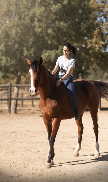 🐎 In vendita – Fattrice CDE 2018 (75% KWPN – 25% PRE) Si offre in vendita fattrice CDE nata nel 2018, con origini sportive consolidate (Ferro X Jazz). Attualmente di 7 anni, è in piena forma e lavora regolarmente. 🔹 Caratteristiche: Pelo baio con un marchio bianco storto, molto espressivo e distintivo. Addestrata al passo, trotto, galoppo ed esercizi laterali. Grande presenza e movimenti ampi, con attitudini sia per il dressage che per l'uso sportivo ricreativo. 🔹 Carattere: Nobile ma *non adatta a cavalieri inesperti*, ma con un grande potenziale per mani esperte che cercano un progetto di qualità e personalità. 💰 Prezzo indicativo: 15.000-20.000 € Posizione: Carmona, Siviglia. Spagna. 📲 Maggiori informazioni, video e visite disponibili su appuntamento.