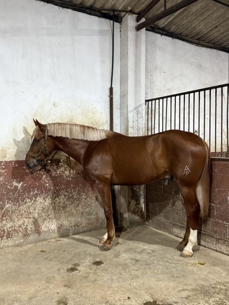 **Sale Advertisement: Spanish Sport Horse** Unique opportunity for equestrian enthusiasts! For sale: stallion of the Spanish Sport Horse breed, born in 2022. This impressive chestnut stands at 169 cm and is ideal for working equitation. His balanced temperament and great disposition make him a perfect companion. Highlighted features: - Breed: Spanish Sport Horse - Type: Stallion - Year of birth: 2022 - Color: Chestnut - Height: 169 cm Son of PRE JECOMIAS CEN and his mother is a KWPN mare This horse has great potential and is ready to be part of your team. If you are interested in learning more about him or scheduling a visit, please do not hesitate to get in touch. Don’t miss the opportunity to have a magnificent companion in your equestrian adventures!
