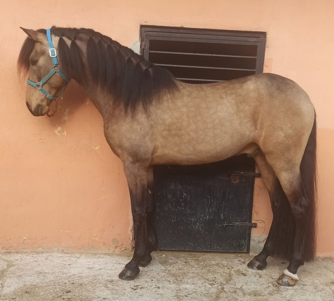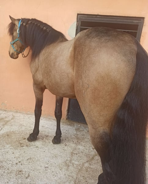 CDE con el Hierro de Lea VICENS. Unico Propietario desde Potro. Capa Muy Exclusiva Bayo en Oro. Edad 6 años y Medio. Talla 1,64 todavía en Crecimiento y Desarrollo. Reproductor CDE e Inscrito en ANCADES. Nieto del Famoso FUEGO FG Lusitano y Nieto del Famoso DIVO PM PADRE RANCHERO AP HIERRO PERALTA CARTUJANO. MADRE MAESTRANZA LUSITANA HIERRO FAIVRE. Montado, paso, trote, galope y realizando diferentes ejercicios de Doma Clásica, Cesiones, Apoyos, Transiciones,Cambios y Paso Español, etc, etc, etc, Consultar. Noble Noble lo montan niñas y adultos en Pista realizando diferentes ejercicios. Saliendo por la calle y campo de Paseos, Rutas solo o en Compañía. IDEAL JUVENILES y AFICIONAD@S. Se acepta Cualquier Revisión veterinaria y Pruebas PRE-Compra. Revisión Veterinaria, Documentación, boca hecha, Vacunas y desparasitado Ok. Se Acepta Periodo de PRUEBAS en la HÍPICA. ( También Disponible para Cubriciones y Envío, Consultar ). Más Información ☎️