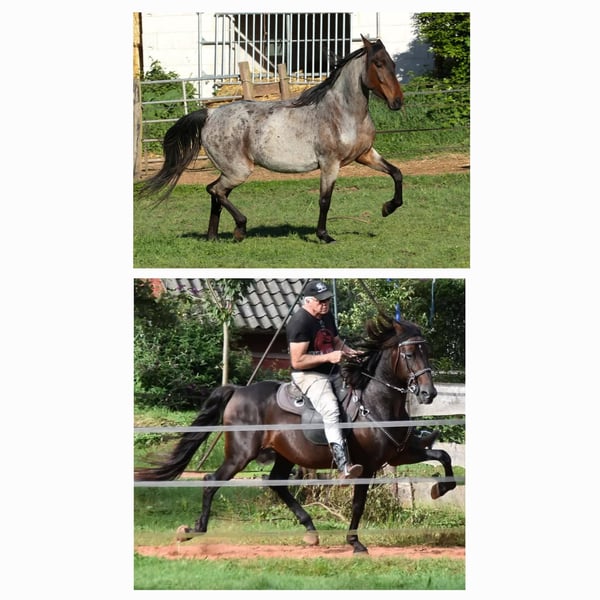 The Speed Racking Horse is a medium to large natural tölter, characterized by its family-friendly temperament and great speed variance. Like the Icelandic horse, the gait disposition can vary from lateral to diagonal. Our breeding program avoids gaited horses, ensuring that all our horses excel in easy-going tölt at all tempos. For the racing tölt to be enjoyable, a relaxed temperament is just as important as an excellent conformation. As the largest breeder in Europe who has brought the breed to Europe, we offer a variety of interesting sale horses, whose parents have been carefully selected over many years based on our criteria of gait, temperament, and health. Those who love easy-going tölt, whether in the field or at competitions, and are looking for a healthy, robust, slightly larger gaited horse will find in our horses a lifelong partner with a strong will-to-please.