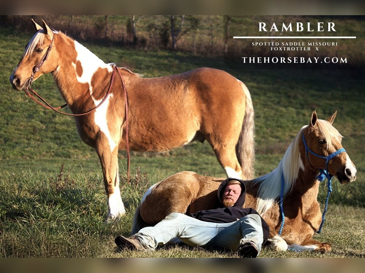 Breath taking appearance, brilliant mind, unreal talent and ability. These are just a few adjectives that I would use to describe this one of a kind horse!! Rambler is a coming 12 year old MFT/SSH gelding that is 15hh. This gorgeous golden palomino Tobiano gelding is 1 in a million! If you were going to have a list for the coolest horse around, he would literally check every box. Appearance ✅ Brain ✅ Gait✅ Canter✅ Handle✅ Tricks 👏✅ He is by far one of the coolest horses I have ever owned! He is super, super good gaited! Ground covering flat walk and running walk where he will flat shake the bridle off! But unlike most he doesn’t just fall apart when you speed him on up, he will shift gears and will saddle rack right on down the road. Wait you want more he has it. He will lope right around like a quarter horse as well. He has a fabulous changeover as well. He will fall right into it out of a dog walk or whatever gait you have him in. He will pick up both his leads as well! Very handy on the ground and under saddle. One hand neck reins, gives off your seat and leg pressure, rides bridless, side passes and backs. He will side pass over to mounting block or will lay down on command to be mounted or just for fun. Extremely good mouth very soft and responsive. Super easy to groom, bathe and clip. Great for farrier as well. He’s very friendly but isn’t pushy or overbearing on the ground. Excellent trail horse he is like a billy goat in the woods give him his head and just point him where you want to go and he will get you there safely. Completely safe around any kind of downtown traffic commotion. If you watch the video, you will see I literally ride in all over my local town and main highways without a bridle. He is extremely levelheaded and not spooky at all. He has been desensitized to about everything you can think of. If you are looking for that once in a lifetime horse, one that never comes up for sale. Especially one that looks like him or gaits like him you better not miss out on this opportunity! Please feel free to call or text me with any questions or set up a time to come out for a test ride. He is UTD on everything! Shots, Worming, Teeth, Coggins and has a current Vet exam! We are located in Mount Vernon Ky and can help with arranging shipping if needed.
