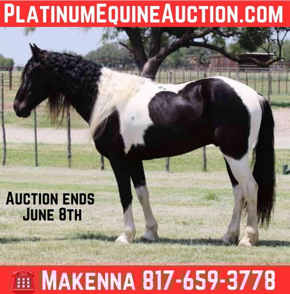 ONLINE AUCTION Place your bids at www.PlatinumEquineAuction.com Starting Bid $3500 Auction ends June 8th, 2025 Need a new saddle? Check out White Rock Saddles on our website or Facebook! Dice is a 7 year old Tennessee Walker, standing 15 hands tally with a mane past his shoulders and a gorgeous tail to go with it! Dice is easy to catch, bath, tack-up, load, and handle. Dice is a SUPER smooth gaited horse at all speed whether that be his runwalking gait or his 4-beat gait that is smooth up to 10mph, Dice carries hisself wth confidence and collection. He neckreins decent and will also lope. He has been ridden around farm equipment, ATV’s, over large noisy tarps and has also had guns shot off of his back. No matter where he goes or what he does, Dice is not spooky acting. Dice has been on multiple camping at multiple parks and ranches and he has handled every rough trail with ease that it has to offer. Dice has been exposed to all kinds of wildlife such as deer or turkey or other animals like cows or dogs and will go anywhere that he is asked too. He has been rode many miles in the mountains and encountered every obstacle possible on the trail. He will go up or down even the steepest slopes, across deep creeks, over downed trees, and over all types of rough terrain while still being sure footed. He has been rode in traffic, even down the very busy and famous Fort Worth Stockyards, and is very traffic safe around cars, semi, log, and dump trucks. He’s a very kind horse with the best disposition and just gets along with everything and everyone! We are able to arrange shipping anywhere from Hawaii to Canada and any state in the U.S. He is located in Lipan Texas Please Call or text Makenna Hartzell 817-659-3778 for more information. ONLINE AUCTION Place your bids at www.PlatinumEquineAuction.com Starting Bid $3500 Auction ends June 8th, 2025 Need a new saddle? Check out White Rock Saddles on our website or Facebook!