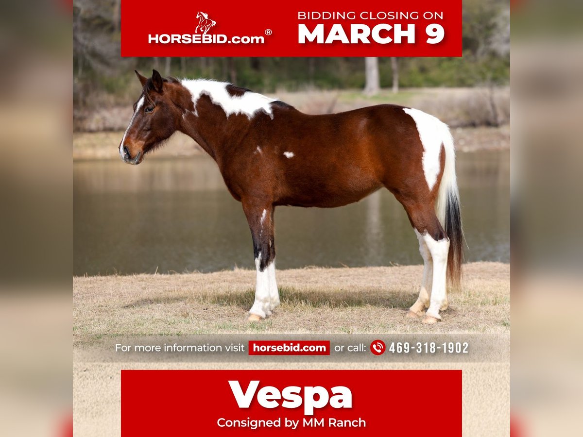 ℳ𝒶𝓇𝒸𝒽 ♦️𝐑𝐈𝐃𝐄𝐑'𝐒 𝐂𝐇𝐎𝐈𝐂𝐄♦️ Happening now thru MONDAY | MARCH 9th - Available EXCLUSIVELY on HorseBid's website! For more details and to register visit: www.Horsebid.com CONSIGNOR CONTACT: MM Ranch 469-318-1902 LOCATION: Forney, TX BREED: Spotted Saddle Bred REGISTERED: No REGISTERED NAME: Vespa COLOR: Paint HEIGHT: 15.2 AGE: 12 GENDER: Mare 🛵 Vespa (like a little cute smooth scooter) is a good honest all around trail horse!! She is the kind that is bombproof and safe for absolutely anyone to ride. She is kid tested and grandparents approved. She has been rode by ages 4 yrs old to 85 yrs old. She is a been there done that type. A true well seasoned horse with thousands of miles under her belt. She is the perfect size of 15 hands tall. Not too big not too small! And she is the perfect age of 12 yrs old. (Vet confirmed on age). 🛵Vespa is a spotted saddle bred horse (gaited horse). If you don’t know about the breed I encourage you to look them up. It’s not a prancy or hyper gait. Not quick. It’s a natural more laid back gentle gait. She will walk or kick her up to her gait. She will go both slow or fast in her gait as well. All the time on a loose rein. You don’t have to fight her or constantly pull her back. You just set the speed to your liking. She is super easy to get gaiting but as soon as you are done she will drop right back down into a walk. It’s kinda of liking putting your car on curse control. She will do the rest. She is a super smoooooth ride!!!! And oh so easy and fun. If you have back or hip issues and need a comfortable ride this is her. Vespa is trail riders dream horse. She is a true lady to be around on the ground. She absolutely loves the kids. She is a very well mannered girl. She stands tied at the trailer, stands for farrier, vet, and bathes well. She stalls well, and enjoys turn out time. She gets along with other horses well. She is a very easy keeper. 🛵 Vespa will cross whatever you come to water, bridges, deadfall, wildlife, and traffic. We have been through rocky terrain, had her around gunfire, tarps, city lights, and cattle, all of which she has handled very well. You cannot rattle her or stir her up. She is a seasoned pro. 🛵 Vespa has a true one hand neck rein, and is very light in the mouth. She backs up with ease. She rides out alone just fine. Not at all buddy sour or herd soured. Not at all hyper. I can’t stress that enough. Other gaited I have been around seem to want to go all the time. That is not her. She will gait when told to then walk the rest of the time. You wouldn’t even know she was gaited till you speed her up. Yes she will lope too. 🛵 We have used her to check our cattle. Yes surprisingly she likes working cattle and being around them. We have took her on many mountain rides through all types of terrain. She is a seasoned real deal trail horse. We have let the kids ride her through town. Absolutely nothing fazes this girl. Not at all spooky or watchy. No bad habits at all. Absolutely no buck or silliness when riding her. We never have to warm her up or tune her up before we take her on a ride. Even if we have went 3-6 month without riding her. We can catch her fresh out on the pasture and go. 🛵 Vespa is a super easy keeper. Requires no maintenance of any kind. She can go bare foot or put shoes on her. You can stall her or turn her out. Doesn’t matter to her. She is easy. PLUS she sells 100% sounds with no health issues. She did have a pre vet evaluation done included in the pictures. If you have anymore questions about her feel free to call. We would love to visit with you about her. We can help you arrange shipping anywhere. She is up to date on all vaccinations, worming, had her teeth checked, feet. She is ready to go to her new home. 🏠