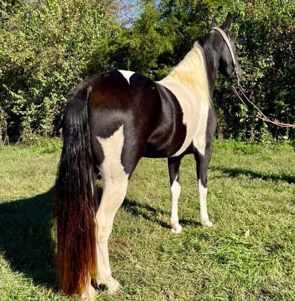 VERFÜGBAR bei der Online-Pferdeauktion unter www.MagicHorseAuction.com GEBOTEN IST JETZT BIS DIENSTAG, 11. NOVEMBER! – SOFORTKAUF MÖGLICH! *Der Endpreis wird auf der Auktionsseite festgelegt* VERKÄUFERKONTAKT: Zach Brandenburg, 513-508-3684 STANDORT: Moscow, Ohio Dixie Pearl ist eine wunderschöne, gut gerittene Spotted Saddle Horse-Stute im Alter von vier Jahren, etwa 15,1 Hand groß. Diese attraktive Dame ist so geschmeidig wie Glas und macht riesigen Spaß beim Reiten! Wenn Sie nach einem selbstbewussten, vorwärts orientierten Pferd suchen, das bei jedem Ritt alles gibt, wird Dixie genau das Richtige für Sie sein! Dixie wurde in der Region geboren und aufgezogen, wurde fachmännisch ausgebildet und hat erfolgreich Trailritte sowie Shows absolviert. Sie liebt Menschen über alles und kommt gerne auf Sie zu, um Aufmerksamkeit zu bekommen. Sie ist eine unkomplizierte Pflegepferd und sieht einfach umwerfend aus. Dieses Pferd macht wirklich viel Spaß beim Reiten und gehört zu den geschmeidigsten, die ich je geritten habe. Sie ist absolut selbstsicher und hat sich bei uns bei nichts erschreckt oder gestolpert! Sie kann sowohl in der Gruppe als auch allein problemlos geritten werden. Wie oben erwähnt, ist Dixie ein gaited horse mit einem geschmeidigen Schritt, zeigt aber auch bei Bedarf einen schönen, gleichmäßigen Galopp. Wenn Sie ein vorwärts strebendes Pferd suchen, das bei jedem Ritt alles gibt, wird sie Ihre Anforderungen perfekt erfüllen!