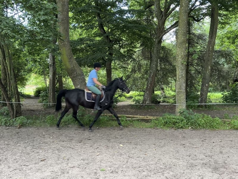 **Sales Advertisement: Swedish Warmblood Gelding** For sale is a beautiful, dark brown gelding from Swedish breeding. **Features:** - Breed: Swedish Warmblood - Gender: Gelding - Year of Birth: 2018 - Height: 150 cm - Color: Dark Brown This charming gelding impresses with his friendly nature and willingness to learn. He is suitable for both experienced riders and ambitious beginners. He has already gained initial experience in dressage and jumping. His balanced temperament makes him an ideal partner for leisure riding. The gelding is well-behaved and has impeccable health records. If you are interested or need further information, please feel free to contact us. Viewings are possible by appointment. We look forward to your message!