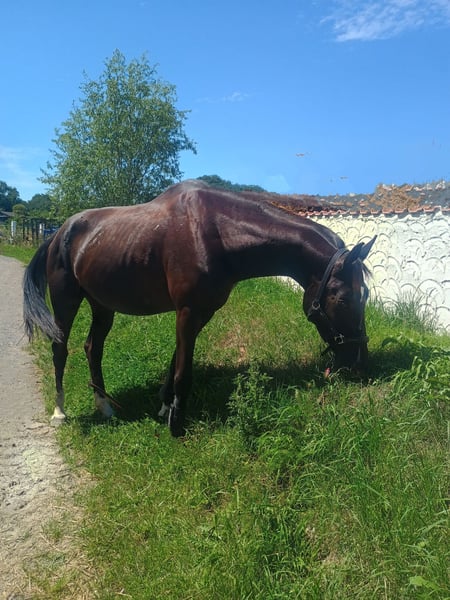 Toller Wallach der im Gelände sowie auch in der Halle geritten wird. Rang niedrig. Unerschrocken, verlässlich im Gelände. Im Umgang stets freundlich. Pferd wurde von einem 10 jährigen Mädchen im Gelände geritten. 15 Jahre Stockmaß ca. 1,69 cm AKU von 05.25 liegt vor - Gesund Zähne sind auch gemacht. Wegen Zeitmangel abzugeben. Probereiten 30 € wird beim Kauf verrechnet.