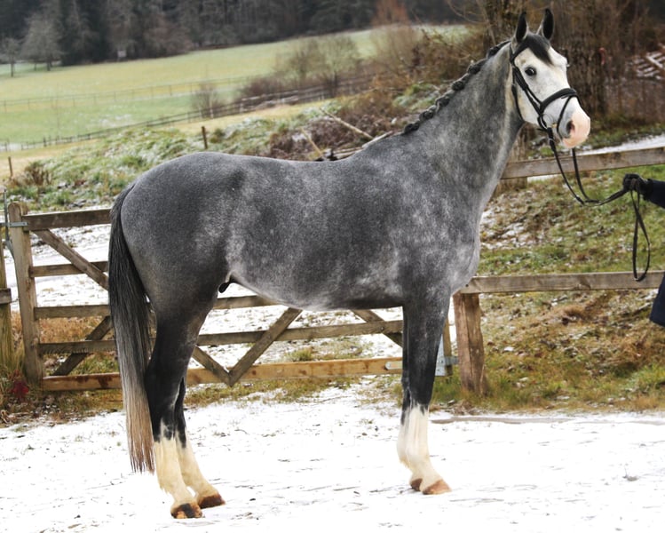**Sales Advertisement: Swiss Warmblood Gelding** For sale is a beautiful Swiss Warmblood gelding, born in 2020. With his elegant gray coat and a height of 165 cm, he is not only a real eye-catcher but also a promising talent in show jumping. This young gelding already shows promising abilities and has great potential for the jumping sport. He is well-trained and demonstrates a cooperative and eager-to-learn attitude both in training and during his first jumps. His friendly nature and balanced demeanor make him an ideal partner for riders looking for a reliable and talented horse. His mother was successful up to the advanced level and produces exceptionally talented offspring. If you are interested or need further information, please feel free to contact me. Don’t miss this opportunity!