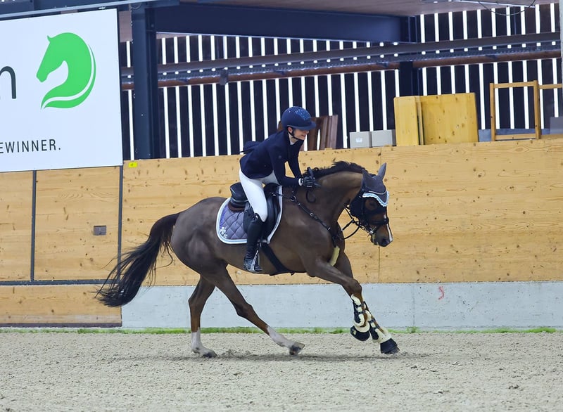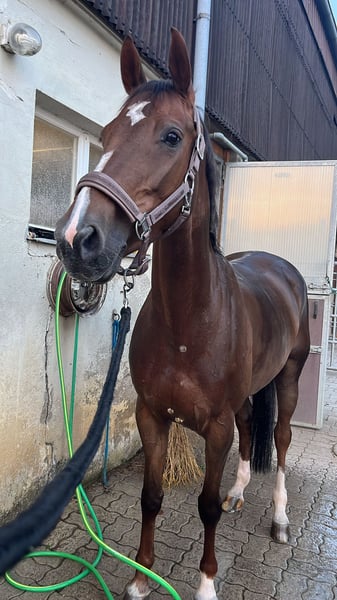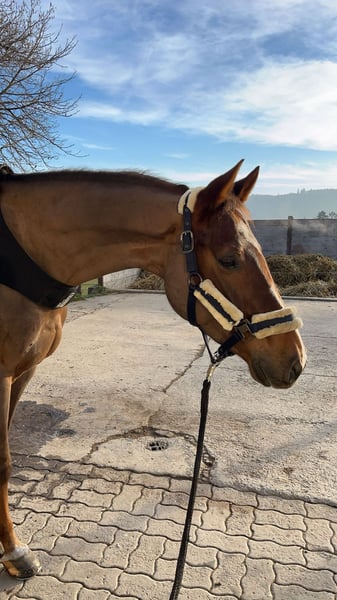 Schweizer WB / 8j / dunkelfuchs / 1.62 V: CAPTAIN SHARKY GG VM: TANGELO VAN DE ZUUTHOEVE Wir suchen für unsere spezielle Stute ein neues Zuhause, wo man sie so nimmt wie sie ist und der Fokus eher im Freizeitbereich liegt. Dressurmässig schön zu reiten, kommt sie einfach an den Zügel und ist mit drei komfortablen Grundgangarten ausgestattet. Da sie mit sehr viel Go ausgestattet ist, braucht sie einen Reiter/Reiterin mit viel Gefühl und einer feinen Hand. Sie ist bis 1.15 klassiert. Überdurchschnittlich gute Technik und viel Vermögen. Leider aber nicht das grösste Kämpferherz. Sie wird beim Springen sehr heiss und kann stoppen. Braucht einen Reiter/Reiterin, der ihr gute Distanzen offeriert und trotz ihres Vorwärtsdrangs ruhig und fein bleibt. Stangenarbeit macht sie hingegen mit voller Gelassenheit, Freude und Motivation. Im Gelände zu zweit und in der Gruppe grundsätzlich sehr brav kann aber mal einen Freudehüpfer machen. Im Umgang eine richtige Stute. Nicht böse, aber man muss ihr klar einen Rahmen geben und Grenzen setzten. Sie ist im Umgang wie unter dem Sattel nie böswillig/kopflos und jederzeit gut händelbar. Wir wünschen uns für sie jemanden, der Zeit hat, sich mit ihr vielfältig zu beschäftigen und ein Vertrauensverhältnis aufbauen möchte. Jemand, der ihre spezielle Art mit einem Lächeln nimmt, trotzdem viel Freude an ihr hat und mit guten und schlechten Tagen umgehen kann. Kein Pferd für Anfänger, Wiedereinsteiger oder unsichere/ängstliche Reiter. Da sie uns sehr am Herzen liegt und wir wirklich ihr 5-Sterne zuhause findet möchten, würden wir sie in der unteren Preiskategorie weiterziehen lassen. Höchste Priorität ist klar: Es muss einfach passen. Hufschmied, Tierarzt, Verladen, alles absolut unkompliziert. Preis: Verhandelbar Fotos und Videos, von denen es mehr als genug gibt, können via 078 644 29 26 angefragt werden. Probereiten gegen eine Gebühr von 50.- selbstverständlich möglich.