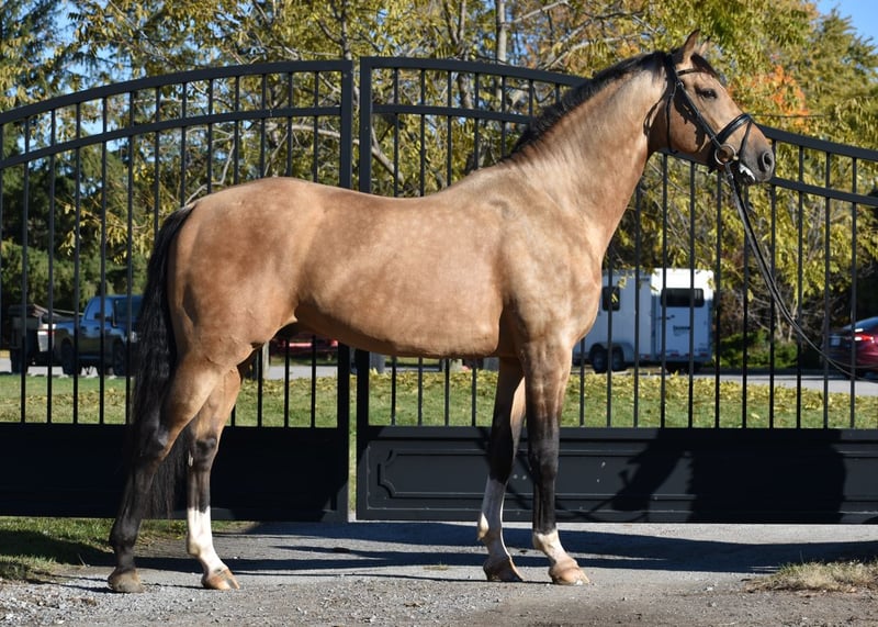 A rare-to-find unicorn…🦄 Our flagship stallion Corteo W5 is now available for a new home. This is the kind of opportunity that doesn’t come twice. Corteo would make a fantastic hunter, but he also has the scope and attitude to shine in the jumper ring. His buckskin coat ensures you never go unnoticed, and his beautiful conformation, well-balanced gaits, and stunning head complete the package. He’s courageous, straightforward, and doesn’t look at anything. His rhythm between the fences is naturally steady and he adds to that an excellent technique and undeniable natural talent over fences. With Cardento, For Pleasure and Bernstein close up in his pedigree, his athletic ability is no surprise. He already has a handful of impressive foals on the ground, each showing that same sharp mind, bravery, and natural talent that make Corteo such a standout. If you’ve been looking for something truly special, this might be your moment.