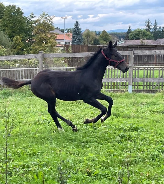 Le foal possède beaucoup d'élégance, d'expression et des allures de base supérieures à la moyenne. Il est à double sang et saute lui-même des petits obstacles dans le pré, même sur des cavalletis ;). Il adore le contact avec l'humain, apprend rapidement et a un caractère fantastique. Nous avons reproduit cette lignée car nous sommes enchantés par ce poulain de l'étalon. Mère : jument gagnante à la performance d’étalons (sur 57 chevaux) Père : étalon de dressage de Grand Prix pour le Danemark, ayant participé notamment à Tryon (USA), Falsterbo (SWE), Aachen (GER), Madrid (ESP), etc.