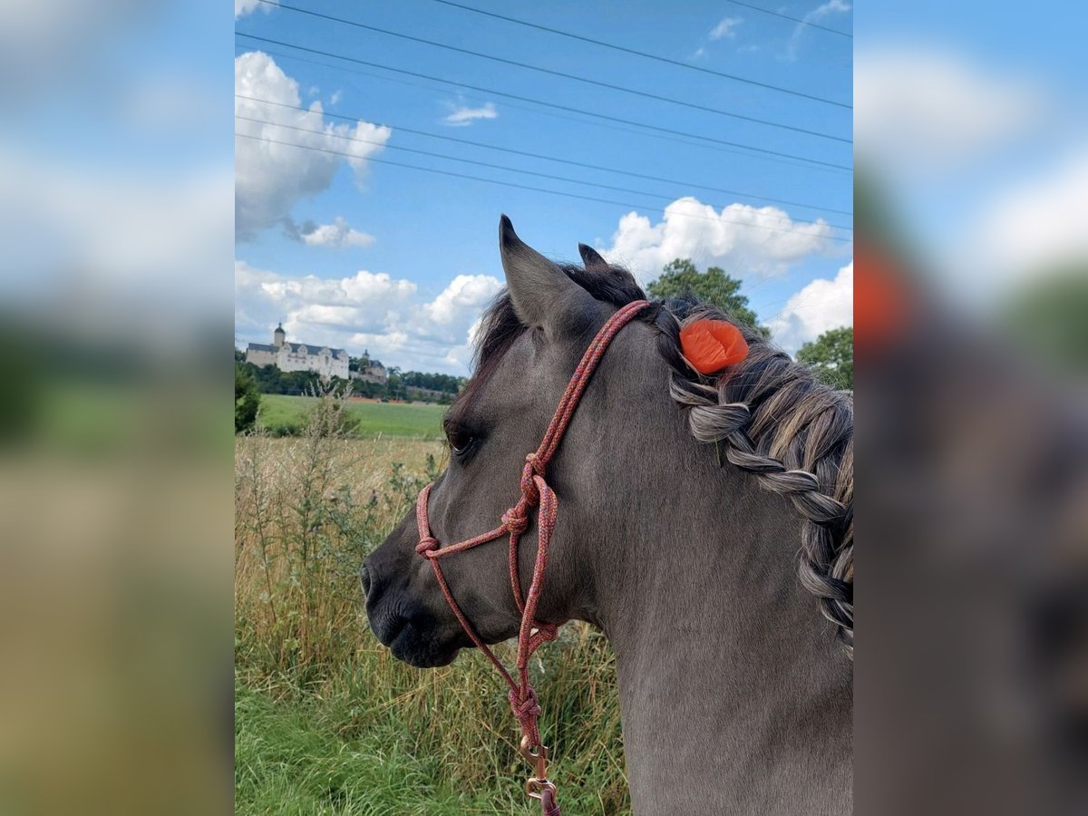 Unser wunderschöner Max sucht sein Herzensmenschen. Solange die Anzeige online ist sucht er noch. Aktuelle Longier und Reitvideos vorhanden. Wir haben ihn dieses Jahr gekauft von einer Familie wo das Mädchen ihm leider raus gewachsen war und wollten ihn für unsere Reitschule und haben dann schnell gemerkt das er damit nicht glücklich ist. Er macht alles ganz lieb und toll mit und will gefallen. Allerdings hat er ein zügigen Galopp der von den kleinsten (4-6jährigen) schwierig zu halten ist. Aber sonst auch für die kleinsten alles toll mit macht. Am liebsten wäre uns wenn er hier in unserem Aktivstall stehen bleiben könnte denn hier hat er tolle Pferdefreunde die er sehr mag und fühlt sich wohl. Aber natürlich darf er auch in ein passendes Zuhause umziehen. Wir können uns ihn auch für therapeutische Zwecke vorstellen. Max ist ein 1Ojähriges Tarpanmix-Pony mit einem Stockmaß von ca 1,25m und lebt in einer gemischten Herde. Und ist dort auch im mittleren Rang. Geimpft und entwurmt. Mit seiner Mausfalb-Farbe, der tollen dicken gewellten Mähne und dem Aalstrich ähnelt unser Max einem kleinen schicken Wildpony. Halbjährlich wurde er der Ostheopatin vorgestellt (zuletzt im Oktober 2025). Bei der Hufbearbeitung steht Max stets ruhig und brav. Max geht auch allein ins Gelände (geritten und zu Fuß). Dort läuft er auf jedem Untergrund zuverlässig in allen 3 Gangarten und lässt sich von kaum etwas erschrecken. Er geht gern ins Wasser und planscht darin herum. Bei einem Geländeritt mit mehreren Pferden läuft er zufrieden an verschiedenen Positionen in der Gruppe. Hat aber ein zügiges Grund Tempo. Er geht auch einwandfrei auf den Pferdehänger. Für Probe reiten nehmen wir 35 Euro. Wir bitten um eine kurze Bewerbung Anfragen wie wie ist der letzte Preis werden nicht beantwortet Transport wäre auch machbar