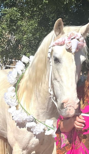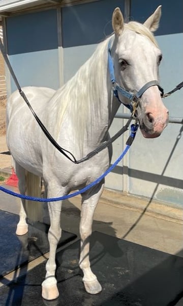 Discover the elegance and smooth gait of this stunning Tennessee Walking Horse gelding. Born in 2011, this impressive white gelding stands approximately 16 hands tall and boasts a gentle demeanor that makes him a pleasure to ride and be around. He's very loving and sweet-natured especially around children... Fun-loving, lots of personality! He has acted as a therapy horse for children with special needs. His natural gait provides a comfortable and enjoyable ride, perfect for riders of all levels seeking a reliable and smooth-moving partner. He has been under extensive training for over 4 years and is easy to handle. The owners are elderly and are broken-hearted they have to sell. A very fun ride!
