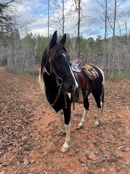 “Escaped Parole” barn name “Denali” is a registered 3.5 year old Tennessee Walking Horse who checks all the boxes that make this breed so special. He is absolutely stunning and has a wonderful disposition. He is already a phenomenal trail horse who is confident with a smooth natural gait that will cover country. Creeks, bridges, dogs, traffic, ect. he has seen it. Lots of videos. With his pedigree, he has all the tools to be a great show horse. 16.1hh, current negative coggins, 2 front shoes. Leads, loads, ties great. Stands to tack and mount absolutely no vices with him. Can't say enough good things about his demeanor. Denali is very sweet, first one to meet you at the gate, is very easy to catch. He has been with 3 different professional trainers and is ready to make someone an incredible lifetime mount. He has been at our barn for 60 days and he is without a doubt one of the nicest young horses I’ve ever ridden. Client is ready to move this horse by the end of the year to no fault of his own. If I could keep him I absolutely would. Lots of great pictures, videos, and information please reach out with any questions! *Selling for a client* “Escaped Parole” barn name “Denali” is a registered 3.5 year old Tennessee Walking Horse who checks all the boxes that make this breed so special. He is absolutely stunning and has a wonderful disposition. He is already a phenomenal trail horse who is confident with a smooth natural gait that will cover country. Creeks, bridges, dogs, traffic, ect. he has seen it. Lots of videos. With his pedigree, he has all the tools to be a great show horse. 16.1hh, current negative coggins, 2 front shoes. Leads, loads, ties great. Stands to tack and mount absolutely no vices with him. Can't say enough good things about his demeanor. Denali is very sweet, first one to meet you at the gate, is very easy to catch. He has been with 3 different professional trainers and is ready to make someone an incredible lifetime mount. He has been at our barn for 60 days and he is without a doubt one of the nicest young horses I’ve ever ridden. Client is ready to move this horse by the end of the year to no fault of his own. If I could keep him I absolutely would. Lots of great pictures, videos, and information please reach out with any questions! *Selling for a client*