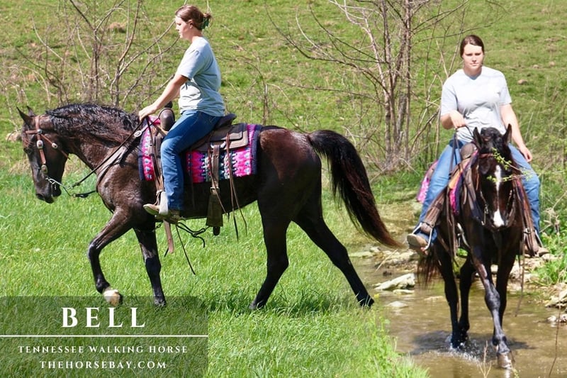 Bell is an outstanding, down-to-earth, gaited mare. She is super gentle and rides like a pro. She’s soft in the bridle and is as smooth as silk. She’s been down countless miles of trails all over TN & KY. Bell stands to mount and dismount. She stands for the farrier with ease! Bell enjoys time being groomed and bathed! Bell is an awesome trail horse. She’s been through thick brush and deep holes of water, through creeks, and over logs! Bell is ready for the summertime trails if you’re looking for your heart horse, Bell might just be your gal!