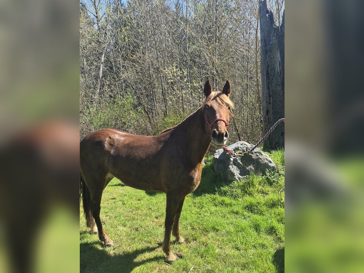 Lernen Sie Daisy kennen – eine beeindruckende 1,65 m große Tennessee Walker-Stute. Sie verfügt über einen schönen, edlen Kopf, eine solide Konstitution sowie ausgezeichnete Knochen und Hufe. Daisy misst 1,65 m und besticht durch ihre elegante, kastanienfarbene Fellfarbe sowie ihre flaxen Mähne und Schweif – ihre einzigartige Färbung und ihr auffälliger Bewegungsstil fallen stets auf. Daisy ist gesund, sound und äußerst gut gepflegt. Sie ist auf dem neuesten Stand bei allen tierärztlichen Behandlungen, einschließlich Impfungen, Zahnkorrektur, Entwurmung und Hufpflege. Sie steht gut für den Hufschmied und ist im Umgang am Boden sehr unkompliziert. Unter dem Sattel zeigt Daisy einen geschmeidigen Vier-Takt-Gang mit einer Überlänge von 30 cm und einem kräftigen, vorwärts gerichteten Schritt. Sie wurde 10 Monate lang professionell ausgebildet und verfügt über zwei Jahre vielfältige Trail-Erfahrung auf den Bergpfaden im Bundesstaat Washington. Sie ist äußerst trittsicher, liebt es, sich zu bewegen, und zeigt sich besonders bei Reitern, die gaited horses kennen, sehr engagiert. Diese Lady ist so sanft wie kaum eine andere. Sie eignet sich hervorragend für den Einstieg in 4-H oder Shows mit minimalem Aufwand. Sie war noch nie tragend, zeigt aber großes Potenzial, da sie bereits andere Fohlen auf dem Hof betreut hat. Kinder und Anfängerfreundlich.