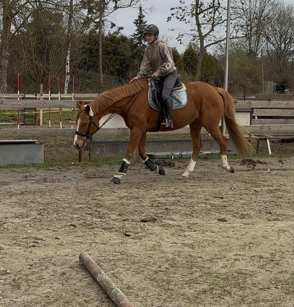 Omdat ik binnenkort voor een langere periode naar het buitenland ga, zoek ik via deze weg een nieuw thuis voor mijn ruin „Toffi“. - 12 jaar oud - Volbloed - 1,65 m stokmaat - Vader NATHANIEL (IRE) is succesvol gerend in Ierland Hij is veelzijdig getraind en is zowel vanaf de grond als onder het zadel zorgvuldig gewerkt. Onder het zadel is hij op M-niveau in dressuur uitgebracht. - Basisprincipes van de klassieke rijkunst – potentieel voor verdere opleiding - Buitenritten zeker (zowel solo als in groep) - Kindvriendelijk - Laad- en smid-vriendelijk - Momenteel hoefbevangen (kent ijzers) - Vrij van stal, in open boxen gehouden Wat vooral opvalt aan zijn rustige en onbevreesde aard: sleeën, zwemmen, treinen, tractoren of hoofdwegen hebben hem nooit uit zijn evenwicht gebracht. Enkele jaren geleden heeft hij kort in een manege gewerkt. Reden van de gunstige prijs: - Een stapsgewijze verandering in de halswervelkolom rond C6/C7 - Sarkoïden (groeien niet en storen hem niet) - Overbeet (verstoort hem niet) Momenteel wordt hij weer bereden, omdat hij een winterpauze heeft gehad. Zijn tanden zijn jaarlijks gecontroleerd en verzorgd, een tandpaspoort is aanwezig. Voor vragen ben ik graag bereikbaar.