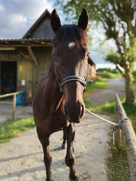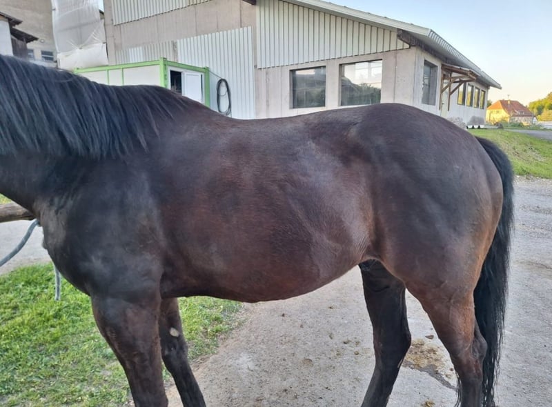 Beautiful 13-year-old Thoroughbred gelding seeking a loving new home. Healthy and approximately 16.1 hh tall. Barefoot. Has raced over hurdles briefly but is now a fantastic leisure horse eager to be further developed. Therefore, not suitable for beginners. Familiar with both pasture turnout and box stall housing. If everything fits, there is some room for negotiation on the price. Accessories (all very new and in excellent condition) can be purchased separately for an additional fee. Please contact us if you're interested – we look forward to hearing from you.