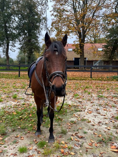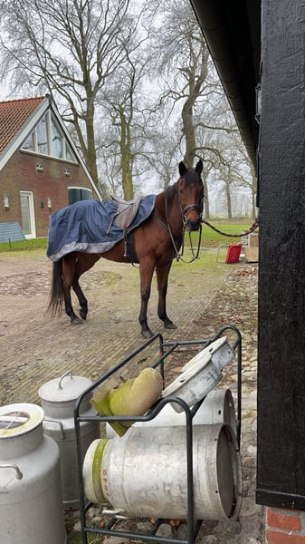 Engelse volbloed ruin, bruin, 12 jaar, gevoelig maar lief en eerlijk karakter. Succesvol ex- renpaard. De afgelopen 6 jaar gereden door ervaren tieners. B dressuur niveau. Zeer geschikt voor endurance, langere buitenritten en grondwerk. Kan een ontspannend dressuurtraining lopen. Gaat graag voor je aan het werk en is intelligent. Verkeersmak, ook bij grootlandbouw verkeer, en betrouwbaar bij de dierenarts en hoefsmid. Staat netjes op de trailer. Is alleen te laden. Makkelijk op stal en in het land. Kan alleen en in een groep. Match is belangrijk. Speciaal geschikt voor mensen met ervaring met volbloeden en ex-renpaarden. Perfect maatje voor ambitieuze ruiter met endurance ambitie. Vraagprijs 5000 euro, maar goede match is beter dan de prijs. Inclusief zadel en hoofdstel en dekens. Niet geschikt voor kinderen of bange of onervaren ruiters. Handelaren hoeven niet te reageren. - schofthoogte 1.57m - bruin met kolletje - verkeersmak - b dresseur - geschikt voor endurance en buitenritten - trailermak