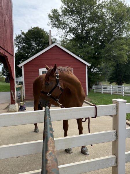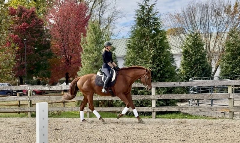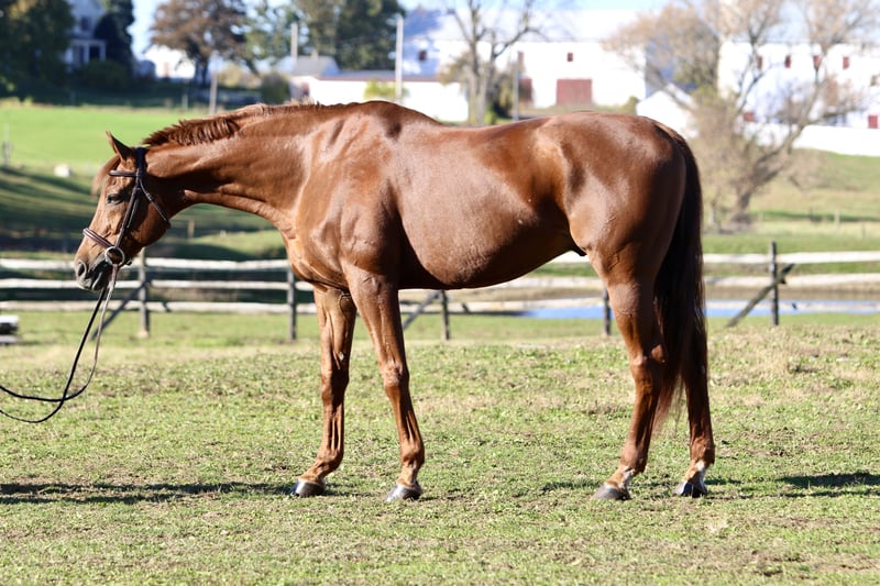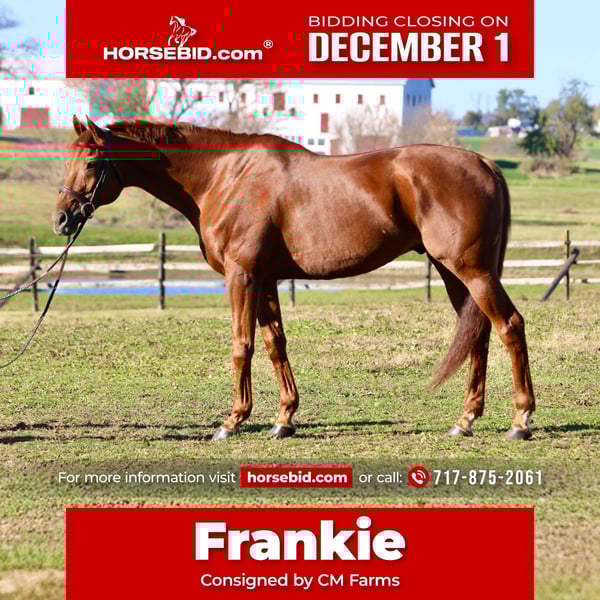 ⚜️ 𝓽𝓱𝓮 𝐇𝐨𝐫𝐬𝐞𝐦𝐚𝐧'𝐬 𝓢𝓱𝓸𝔀𝓬𝓪𝓼𝓮⚜️ Happening now thru MONDAY | DECEMBER 1st - Available EXCLUSIVELY on HorseBid's website! For more details and to register visit: www.Horsebid.com CONSIGNOR CONTACT: CM Farms 717-875-2061 LOCATION: Gap, PA BREED: TB REGISTERED: No COLOR: Chestnut HEIGHT: 16.3 AGE: 15 GENDER: Gelding Meet 💎”Diamond in the Rough”💎 (aka Frankie)! This stunning boy is a 15-year-old, 16.3-hand, TB, gelding. With legs for days, a bright, shiny coat, and his fun personality, he’s hard to miss! Not only is Frankie eye-catching, he’s also loaded with talent and experience. He’s had the same owner for the past six years and has received five-star care. He’s successfully shown in the hunters through 2'6", schooled up to 3' with scope for higher, has an auto lead change, and has also dabbled in dressage and cross-country. Here’s one that could easily do three-day eventing and clean up. Don’t let his age fool you—Frankie has lots of life to give and can't wait for his next adventure! In the ring, Frankie is a straightforward, educated ride and a fun one at that! He’s slow and easy on the flat—more on the push ride side—but not one you constantly have to push. He has a lovely headset, goes on the bit, and carries himself nicely. He knows leg yields, shoulder-ins, and turns on the haunches. This guy has great balance in both directions and has auto changes both ways; he will even naturally swap after a jump if he’s not on the correct lead. He would shine in a dressage arena and be your next favorite ride! Over jumps he has his own little motor and has fun doing it! His ears perk forward, and he will jump from anywhere. He has zero stops, run-outs, and no mean or naughty behavior. He’s very controllable, adjustable, and will take care of you if you put him in a bad spot. He has cute form, a good attitude, and a floaty step. He’s comfy to sit to the trot, and his canter is like floating on air. He can be a typical TB and test you with a spook, however, it’s a very rideable spook; it’s always just in place. He’s not one to pull anything dirty or bolt. As long as he has a confident rider to laugh and push him forward, he immediately comes back to you and gets to work. Off property he is a gem; he settles right in and, if possible, even behaves better! It’s like he knows there are people watching him and he likes to show off. It's a blast to take him cross-country—he’s one you can jump around and then walk on a loose rein right after. He has so much talent, and you don’t find ones like him often. Frankie has been through our desensitization program, and some would argue he was the easiest TB we’ve ever had! He has a curious personality and likes mental stimulation. He plays with the ball, he’s walked through smoke, he is completely tarp-safe (you can even put it over his head, lol)—and the most he might do is taste-test new things. He’s traffic- and equipment-safe and safe to take out on the trail! He likes to go out, he hops right on the trailer and loves seeing new places. He will lead or follow in a group and doesn’t mind if another horse rides too close. He loves his buds and gets along with everyone without being overly attached. He’s a fun horse, ready to go out and do his job—the hard work’s already been done! In the barn, Frankie has enough personality for three horses. He loves to be groomed and is an in-your-pocket type—so much so he sometimes needs reminded of personal space and not to be too mouthy. This ham is an absolute riot—he’ll share a drink or snack with you and makes all the funny faces! He’s easy to tack up and handle, and he’s well-behaved for the farrier, vet, and dentist. He has been turned out in green pastures and dry lots. He respects a fence, has zero bad stall habits, and is overall a lovely, safe horse to have around. Frankie has had minor maintenance suitable to his age and has zero limitations! His owner has only decided to move him along due to a lack of time for him—and this guy is too nice to sit on the back burner! If you want educated and fun, one that has miles in every direction, and one that has all the skill to be your fancy new show horse—Frankie is your guy.