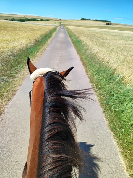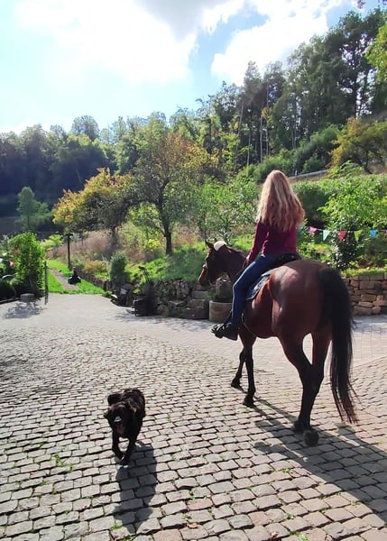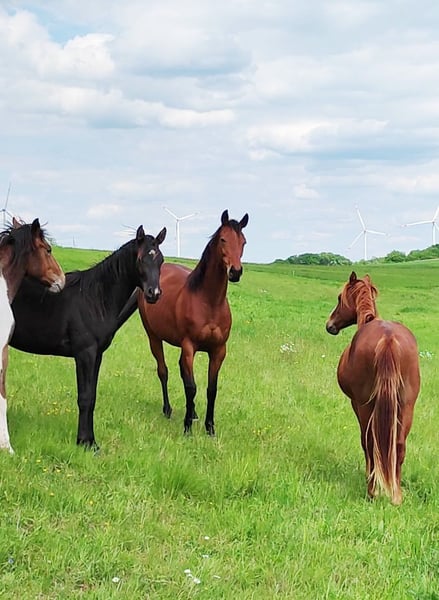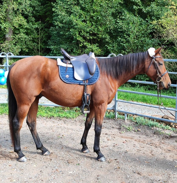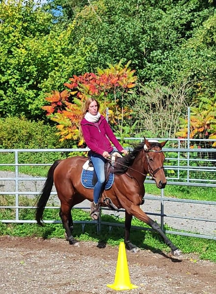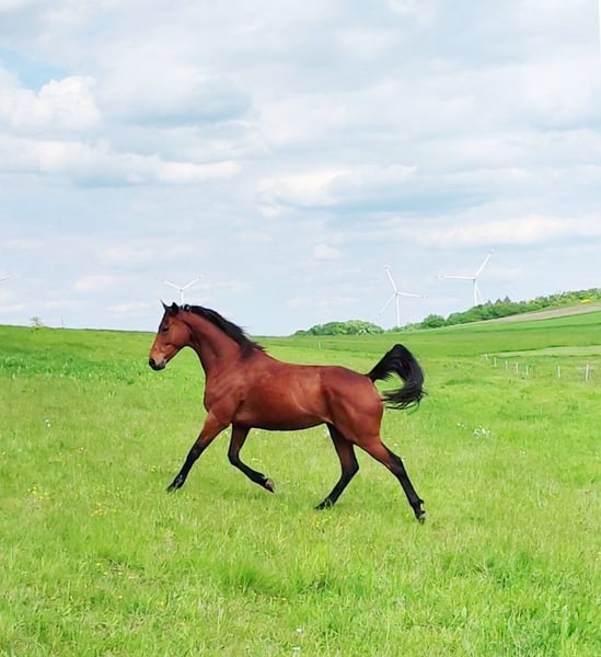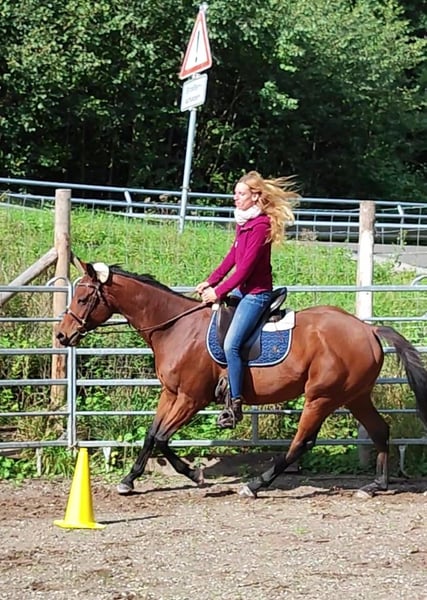 Foxred - Vielseitiges Reitpferd mit großer Perspektive! 6-jähriger, 165cm großer, brauner Vollblut Wallach mit moderner Abstammung V: ANJAAL, M: AMARY. Fox beeindruckt auf Anhieb. Im Umgang sehr kopfklar und unkompliziert, unerschrocken und dem Menschen zugewandt, begeistert er unter dem Sattel durch Zuverlässigkeit, angenehme Bewegungsfreude und genügend Sensibilität für das große Viereck oder die Arbeit mit Kindern/Jugendlichen. Er ist Arbeitswillig und beeindruckt immer wieder mit seinem menschenbezogenen Wesen. Er lässt sich toll alleine Arbeiten, braucht keine Sicherheit durch andere Pferde und kommt in einer neuen Umgebung sehr schnell an. Ideal für Auswärtstraining, Turniere oder Wanderritte. Er begeistert mit seiner inneren Ruhe und einem einwandfreien Charakter. Seine drei sehr guten Grundgangarten lassen sich bequem sitzen und bieten viel Potential für mehr Vorhandaktion und Raumgriff. Seine Anlehnung ist fein und macht dem Reiter Freude beim Abrufen der gelernten Lektionen. Fox liebt auch das Gelände und ist hier ein zuverlässiger Partner, ob in Begleitung oder bei einem Ausritt alleine! Ein Reitpferd für vielseitige Ansprüche! Bestens geeignet für Anfänger, Jugendliche, erfahrene Reiter und zur weiteren Ausbildung im Bereich Dressur, Springen oder Gelände! REITVIDEOS und VIDEOS vom Freilauf gerne über Whats app ✔️ Eine Ankaufsuntersuchung kann gerne im gewünschten Umfang in Auftrag gegeben werden ✔️ Kennenlernen, Probereiten, Transport ins neue Zuhause,... nach vorheriger Absprache und gegen Übernahme der Kosten gerne möglich ✔️ Fox ist bestens sozialisiert, schmiede- und verladefromm, barhuf und wird nur in eine artgerechte Haltung mit ganzjähriger, zugänglicher Weide abgeben. Er ist Aufsetzkopper und benötigt u.a. deshalb große Weideflächen (in Hektargröße) um gesund und glücklich zu sein. Nur wegen dieser Besonderheit ist dieser tolle Wallach so günstig zu haben! Weitere Infos gern unter 01778787640